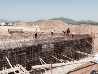 2016.04.19 G路箱涵进行侧墙和顶板钢筋绑扎