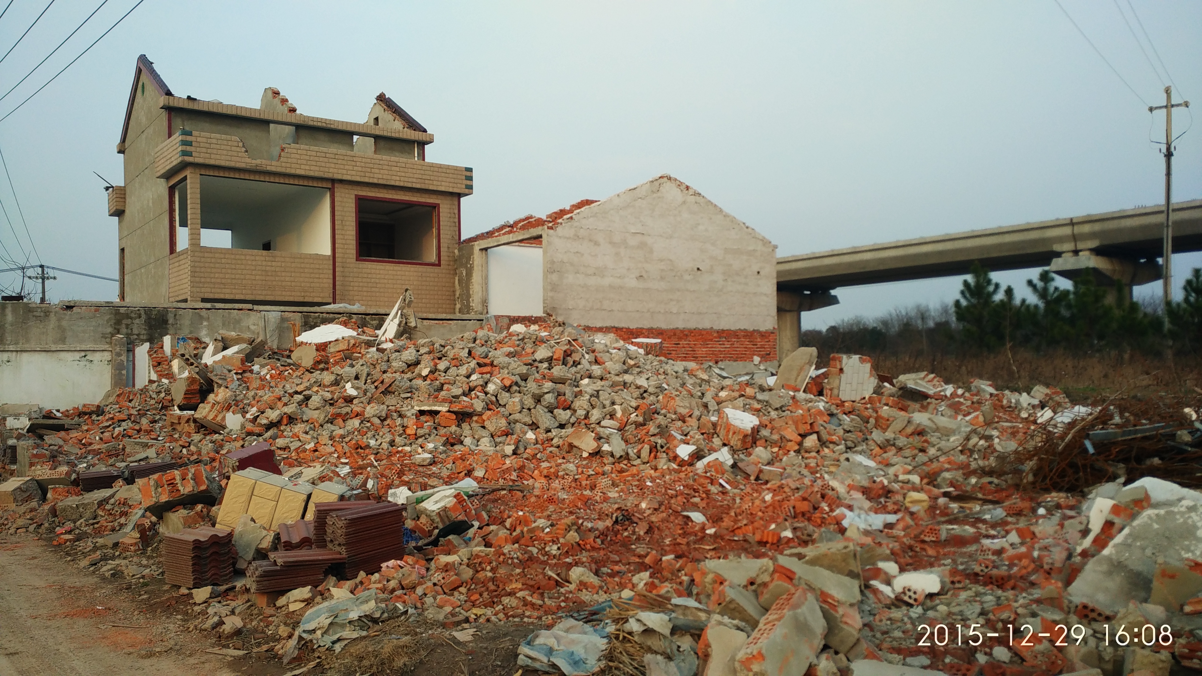 2015年12月30日,我院溧水新校区征地拆迁整体进度95.50%,已签约277户,剩余13户尚未签约。目前,拆迁场地大部分屋面、墙面已推倒,地面建筑垃圾尚未清运。