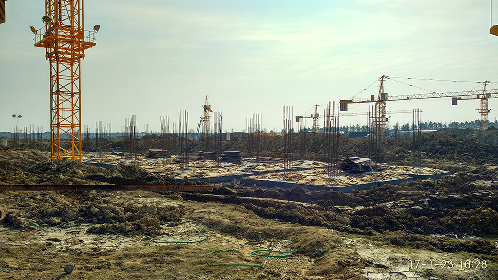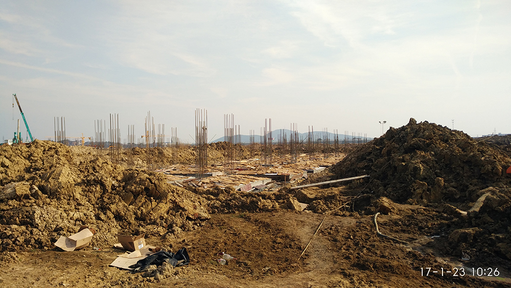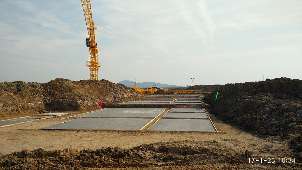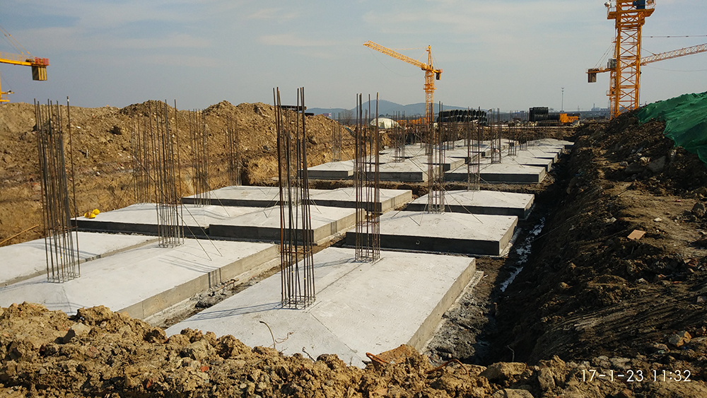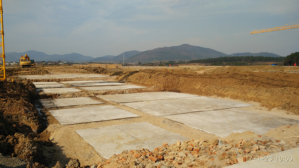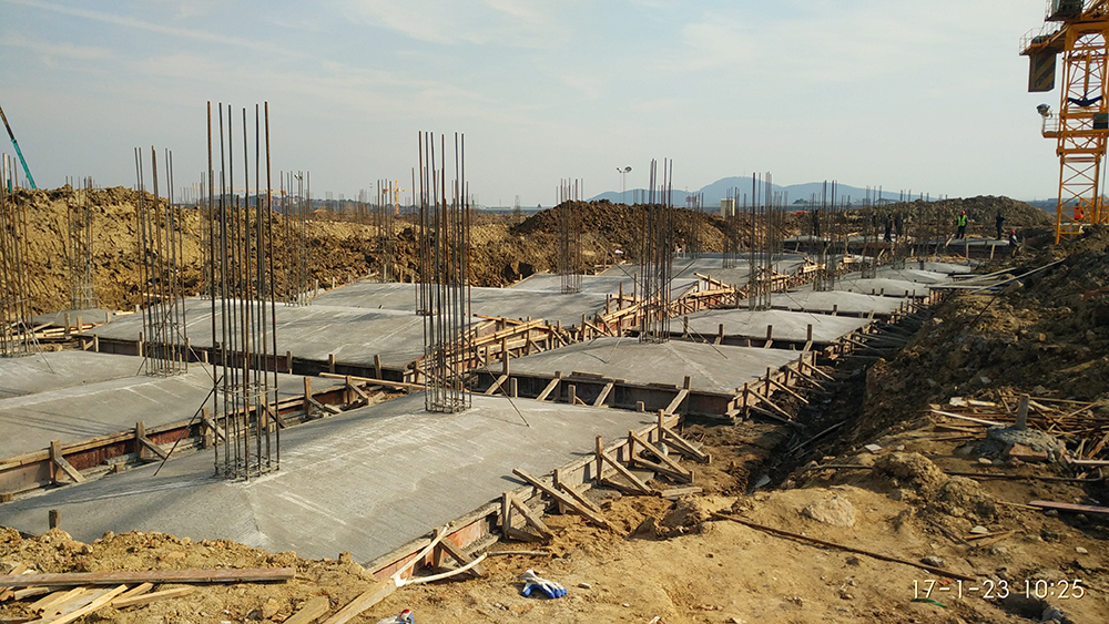 5. 1#组团除1#-3外其余单体均完成砼垫层浇筑;