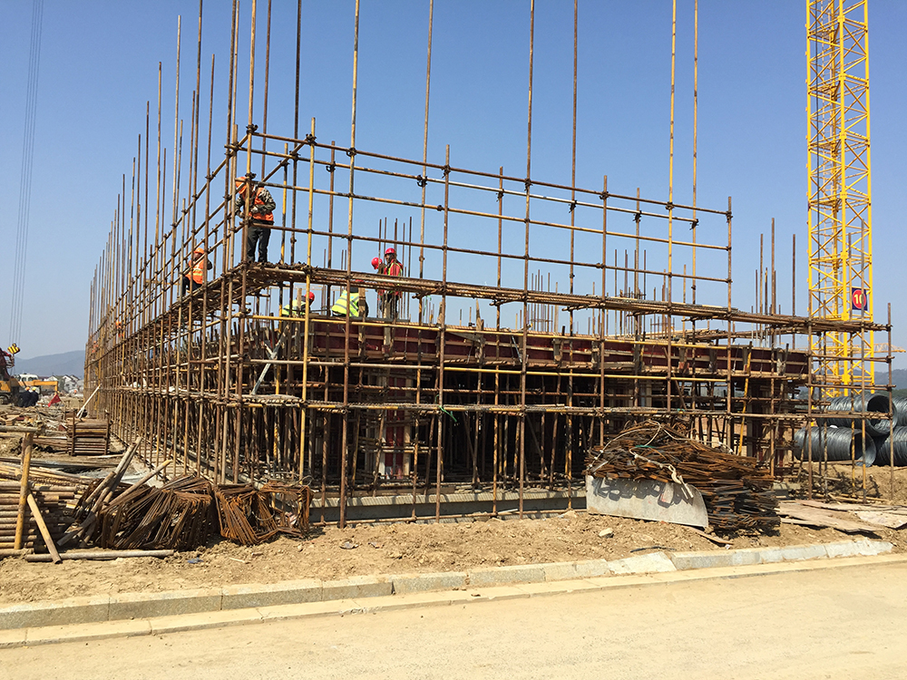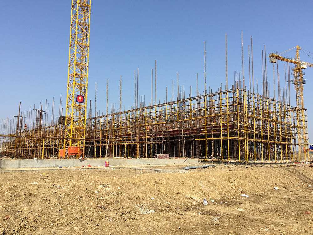 5. 5组团5-15-3三层5.5m砼浇筑结束(其中四层8.3m排架完成50%)。