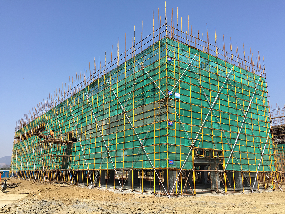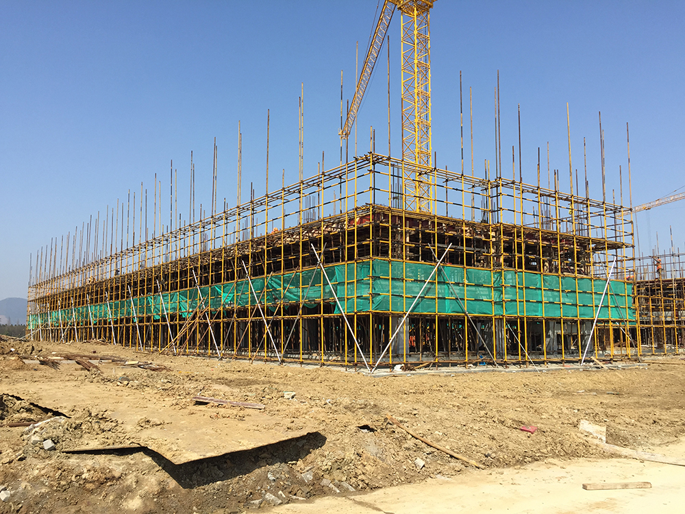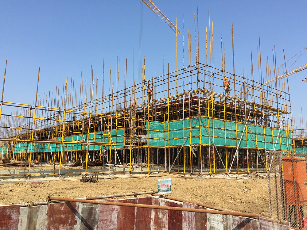 15.公共教学楼与理科楼之间连廊完成基础梁排架搭设。