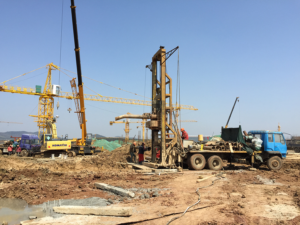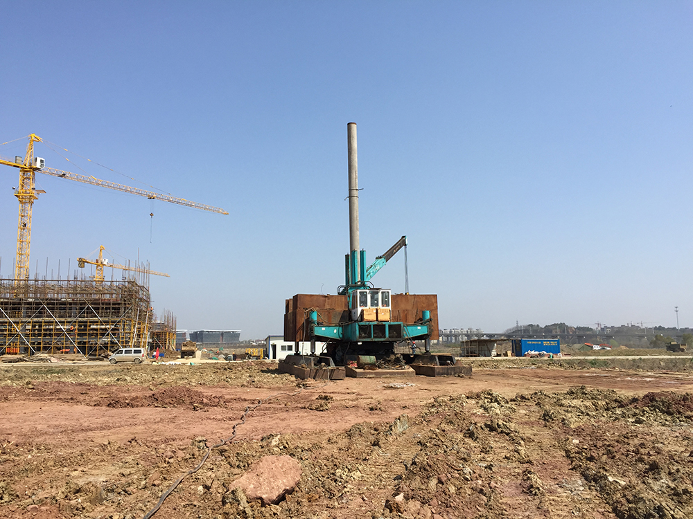 21.理科楼灌注桩累计完成304根,剩余103根。
