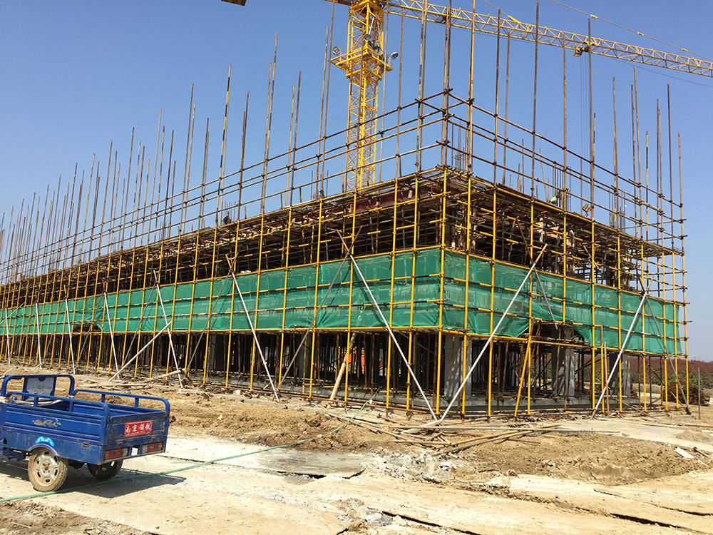 9. 1组团1-1四层排架搭设完成,砼浇筑完成(其中1-2室外回填结束)。