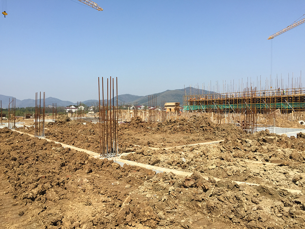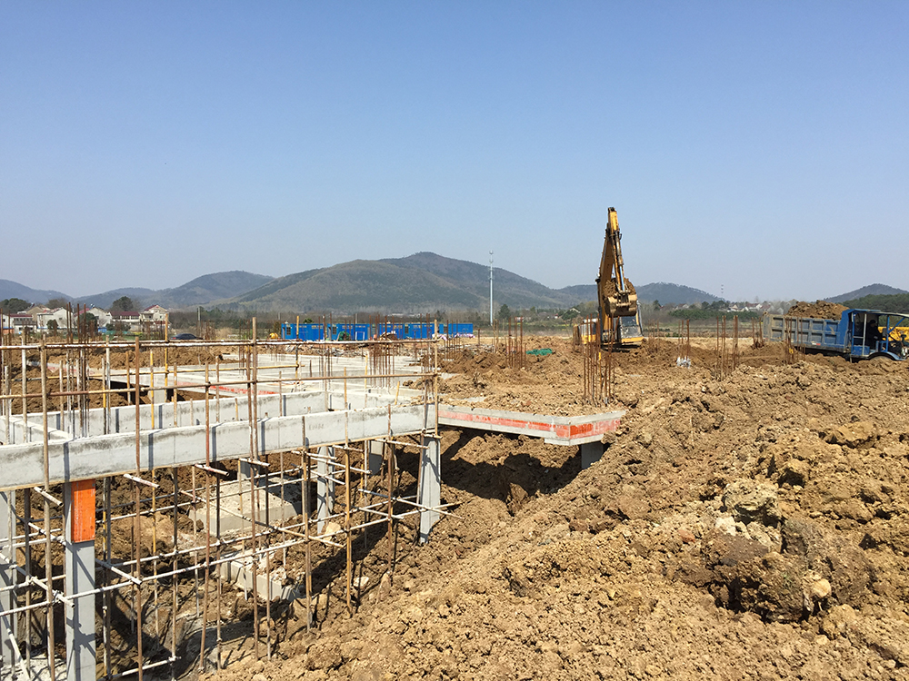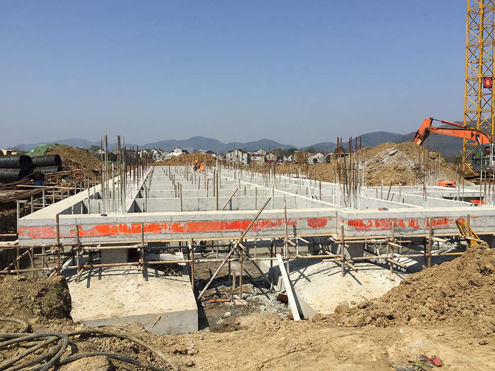 15. 公共教学楼一挖土结束,垫层浇筑完成。