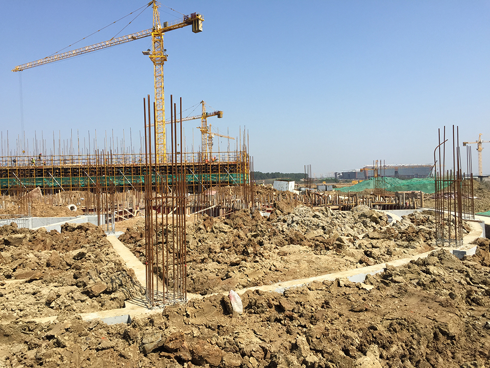 塔吊已进场22台(其中21台已安装完成),现场有挖掘机11台、土方运输车15台、静压桩机2台、移动式高速钻孔钻机7台。