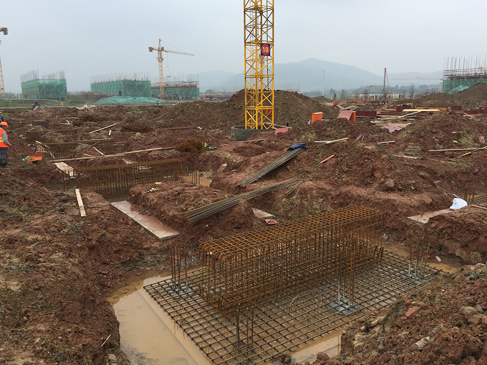 16. 3组团3-1、3-2垫层砼完成,承台钢筋绑扎完成30%。
