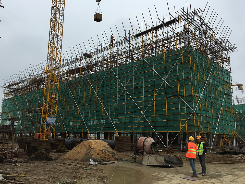 10. 二食堂一层排架搭设完成30%。