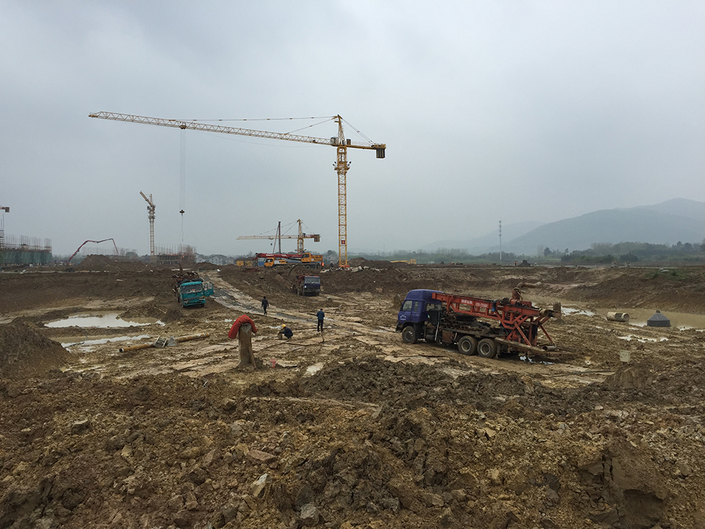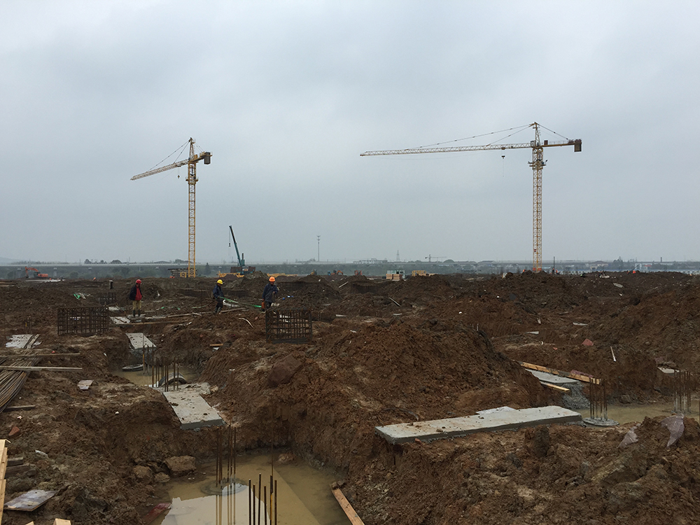 塔吊已进场25台(其中22台已安装完成),现场有挖掘机10台、土方运输车13台、静压桩机1台、移动式高速钻孔钻机6台、锤击桩1台。