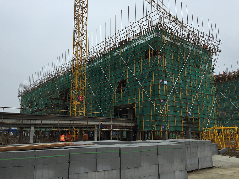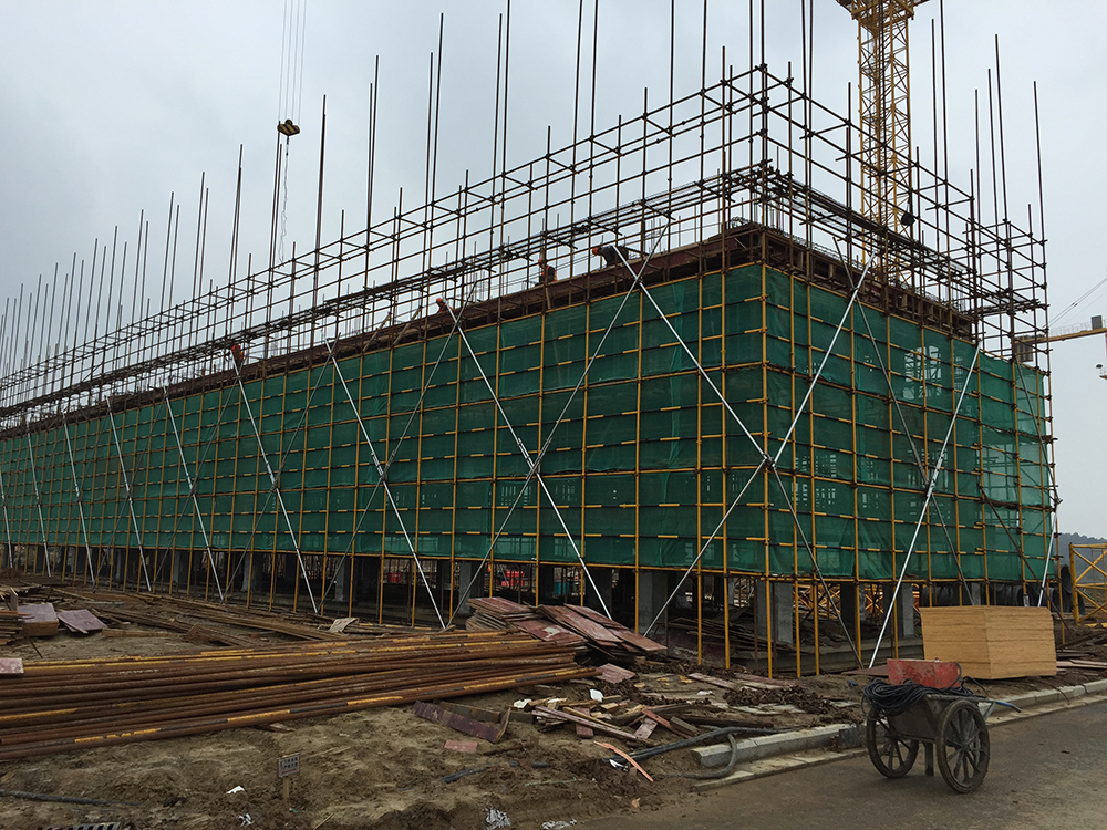 10. 二食堂一层排架搭设完成80%。