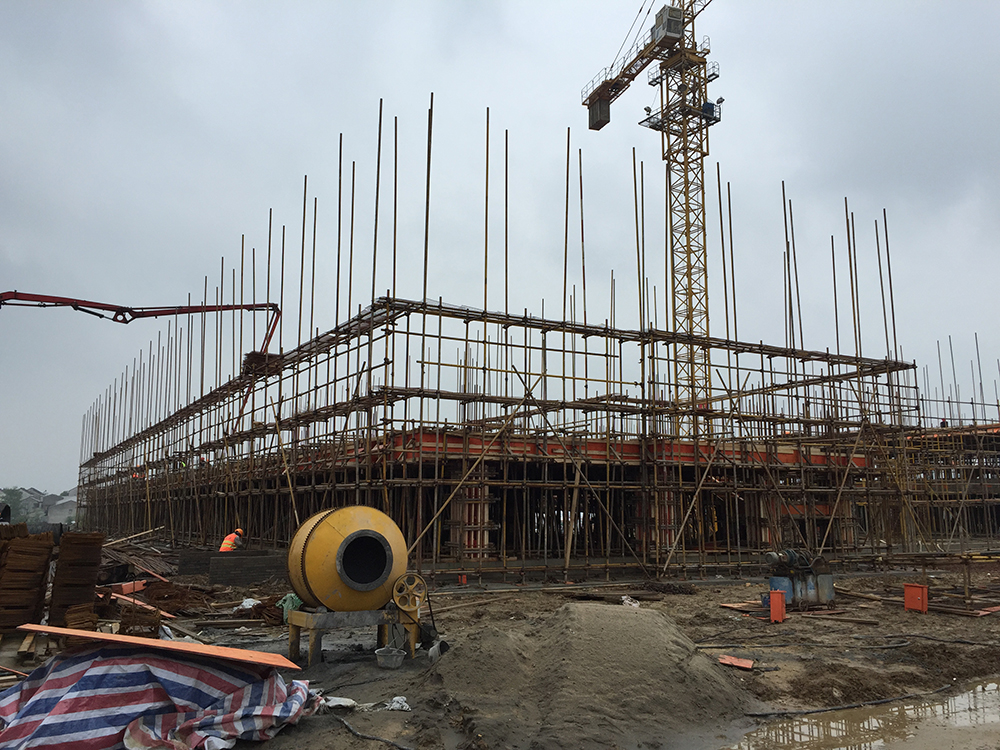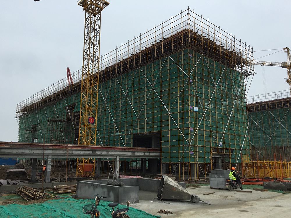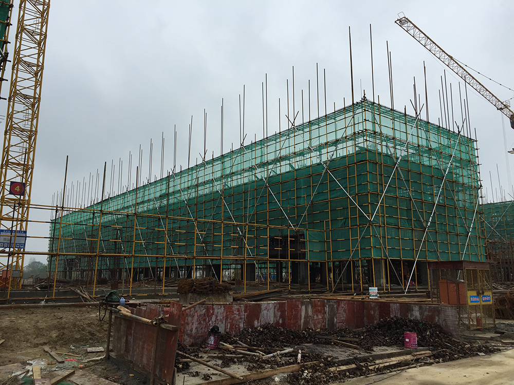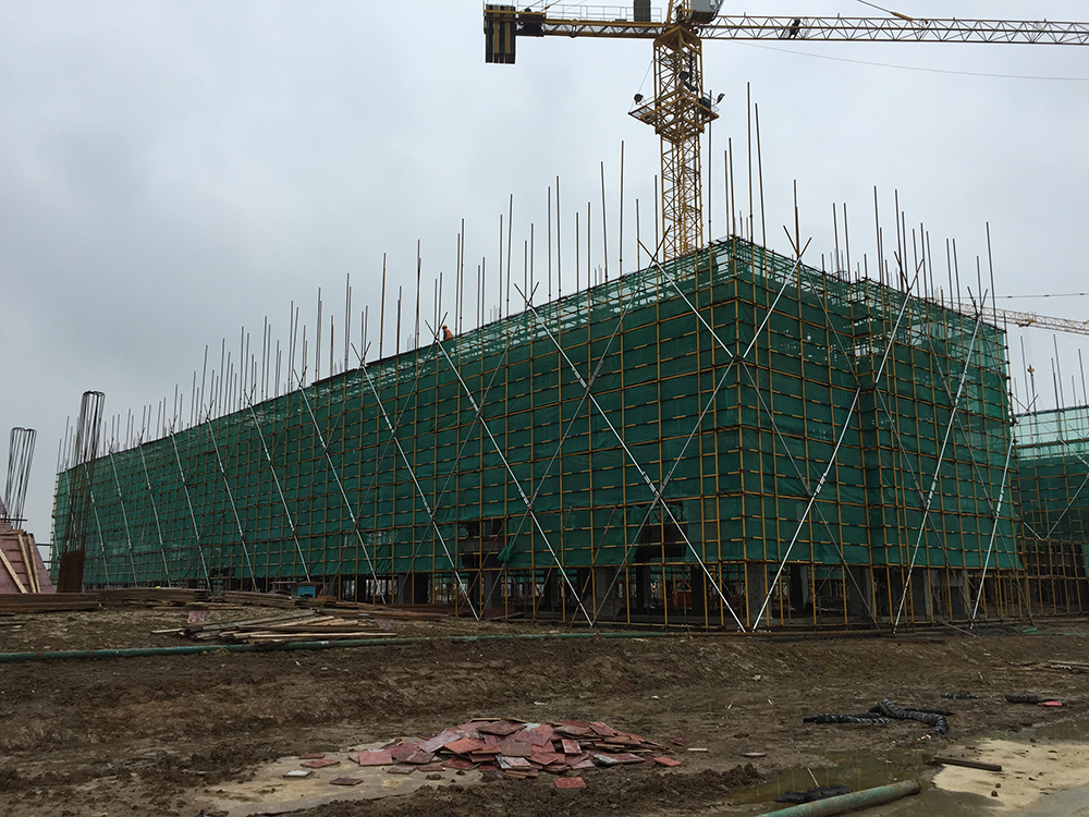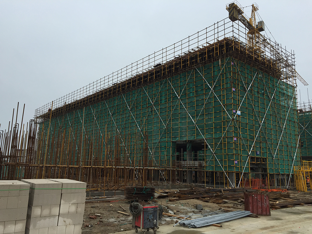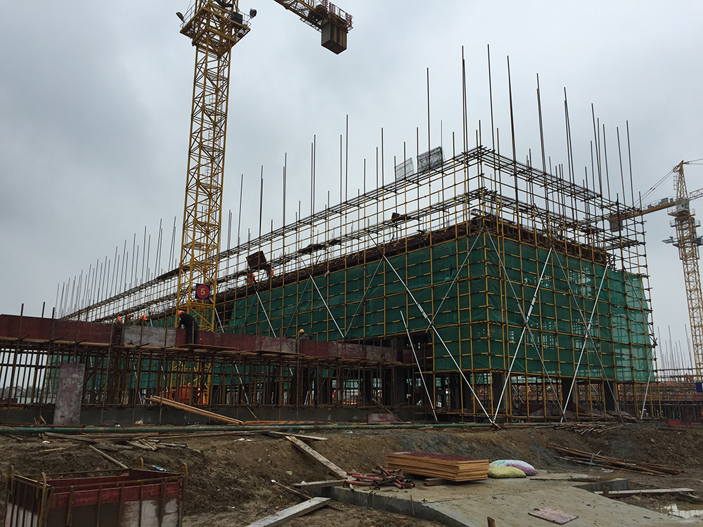 3. 5组团5-1、5-3三层砼浇捣结束(其中5-1四层排架搭设完成30%)。