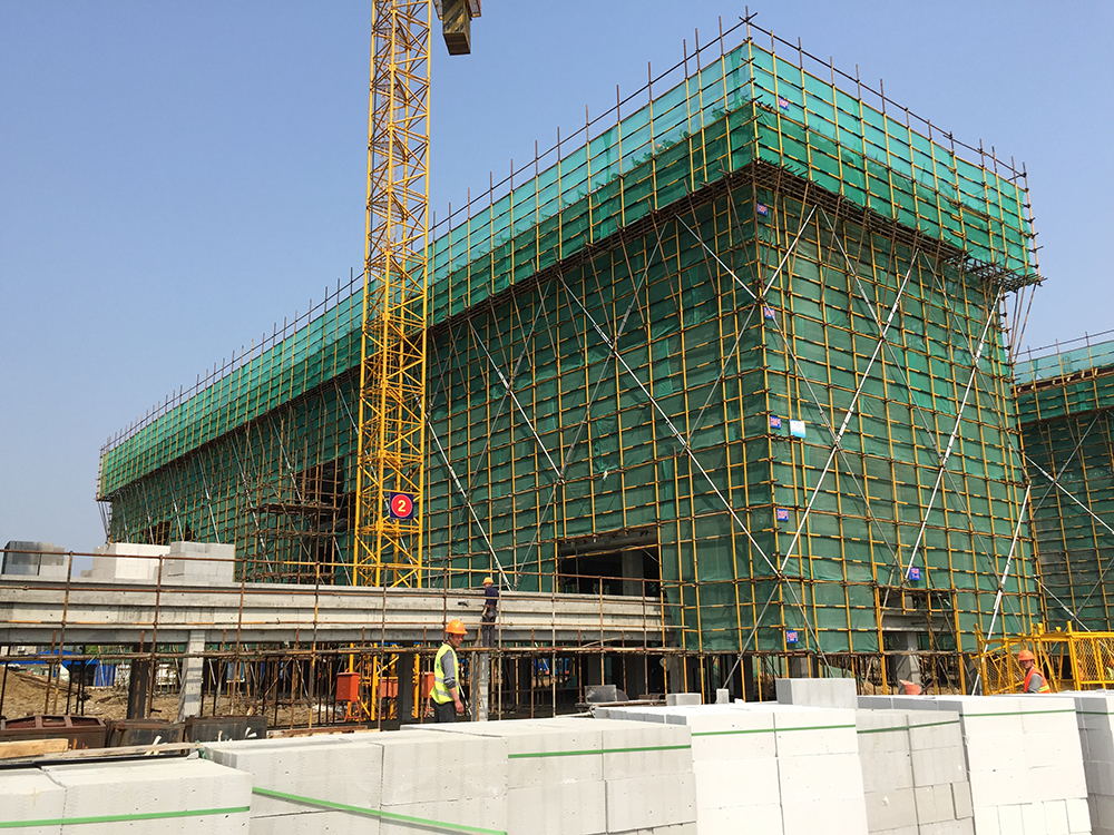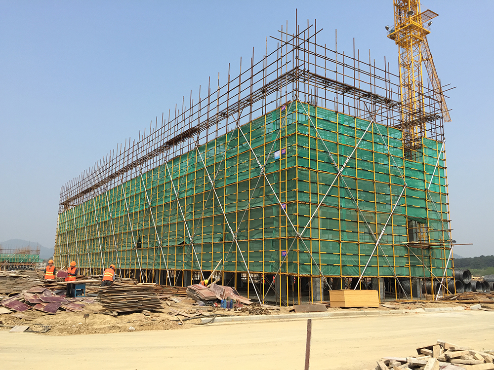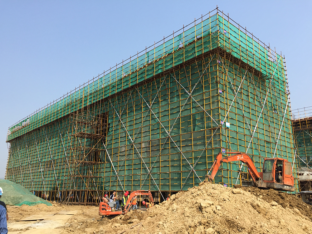 10. 二食堂一层排架搭设完成80%