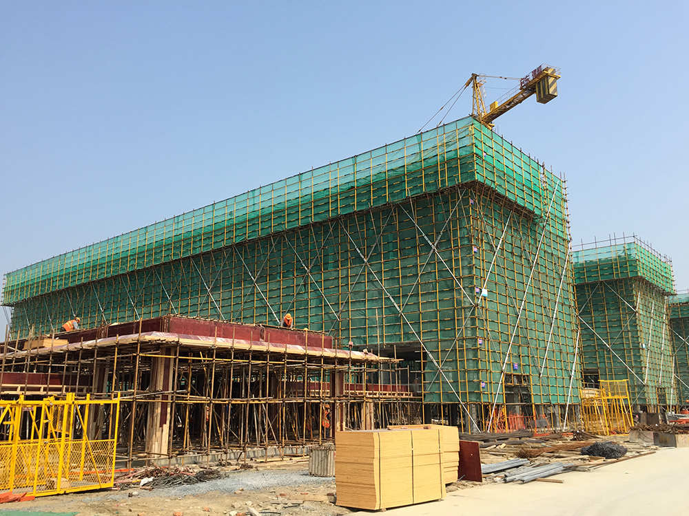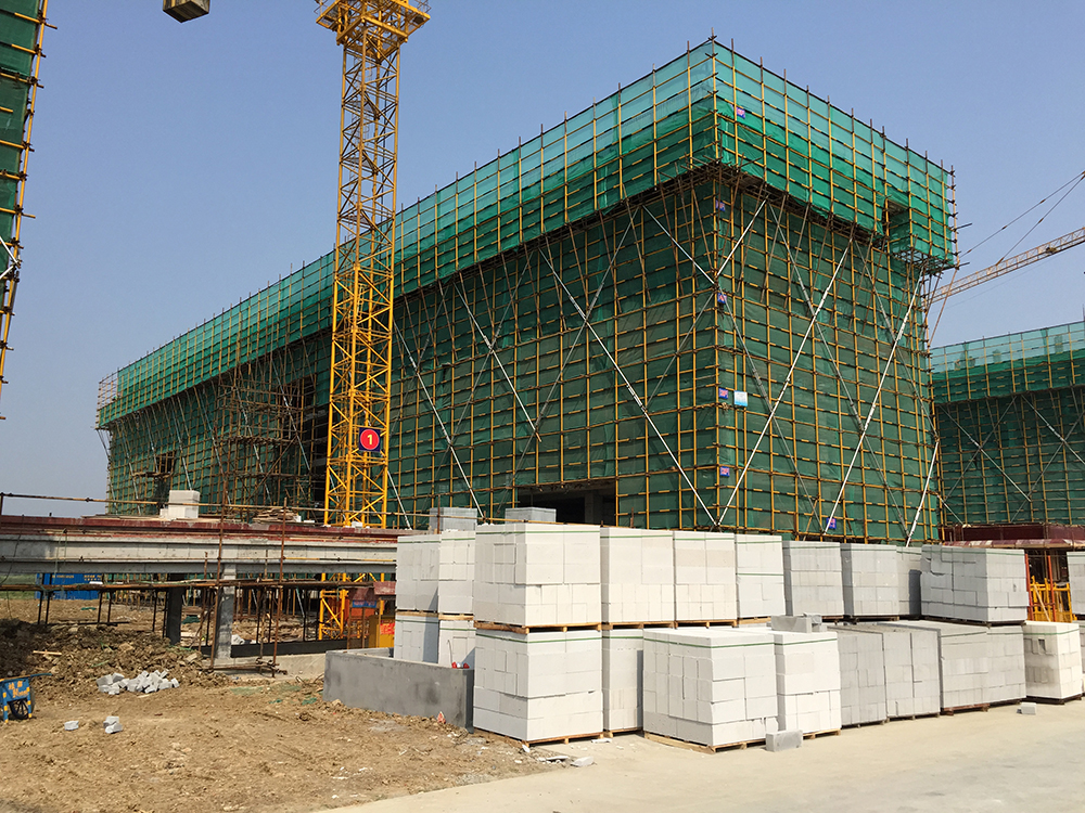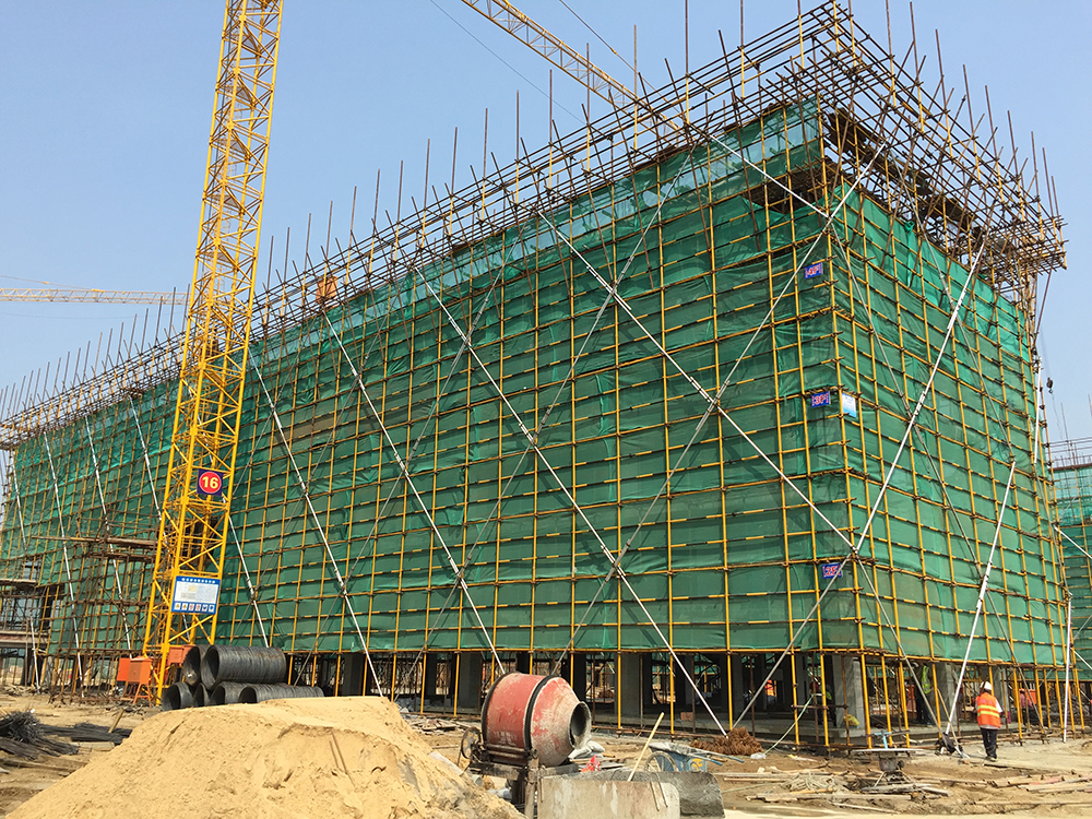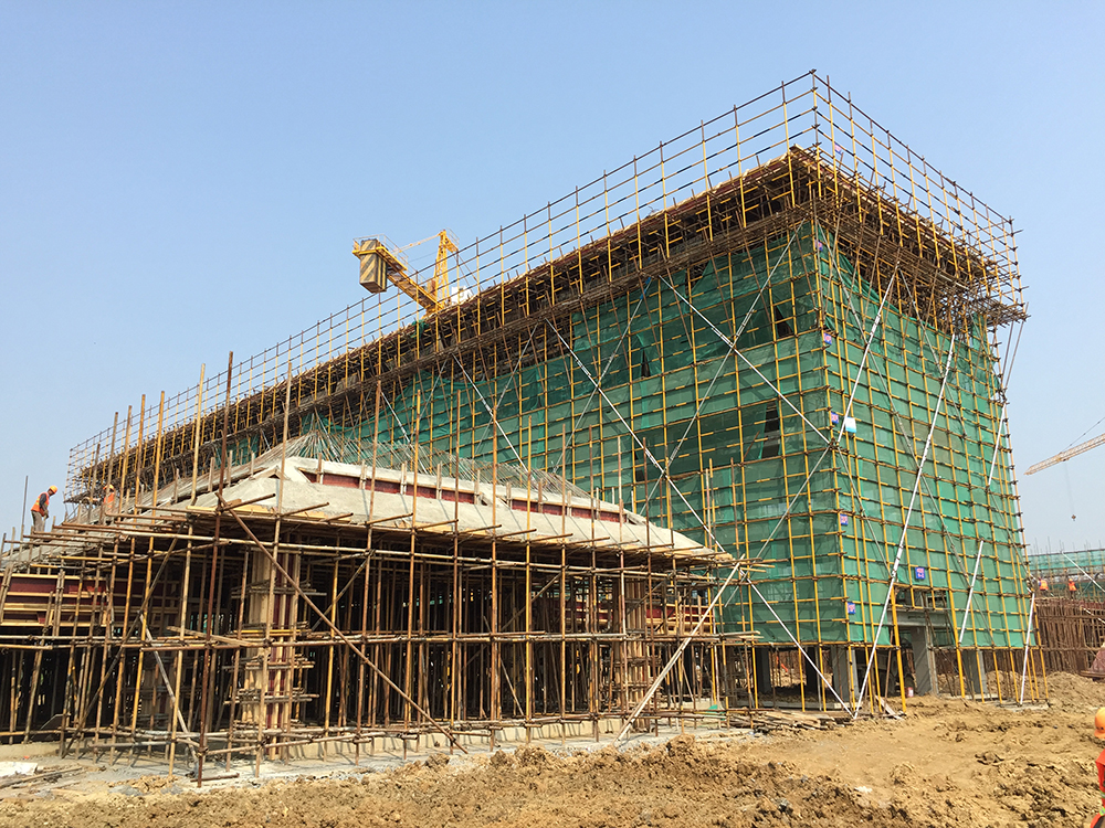 13. 公共教学楼与文科楼之间连廊排架搭设结束。
