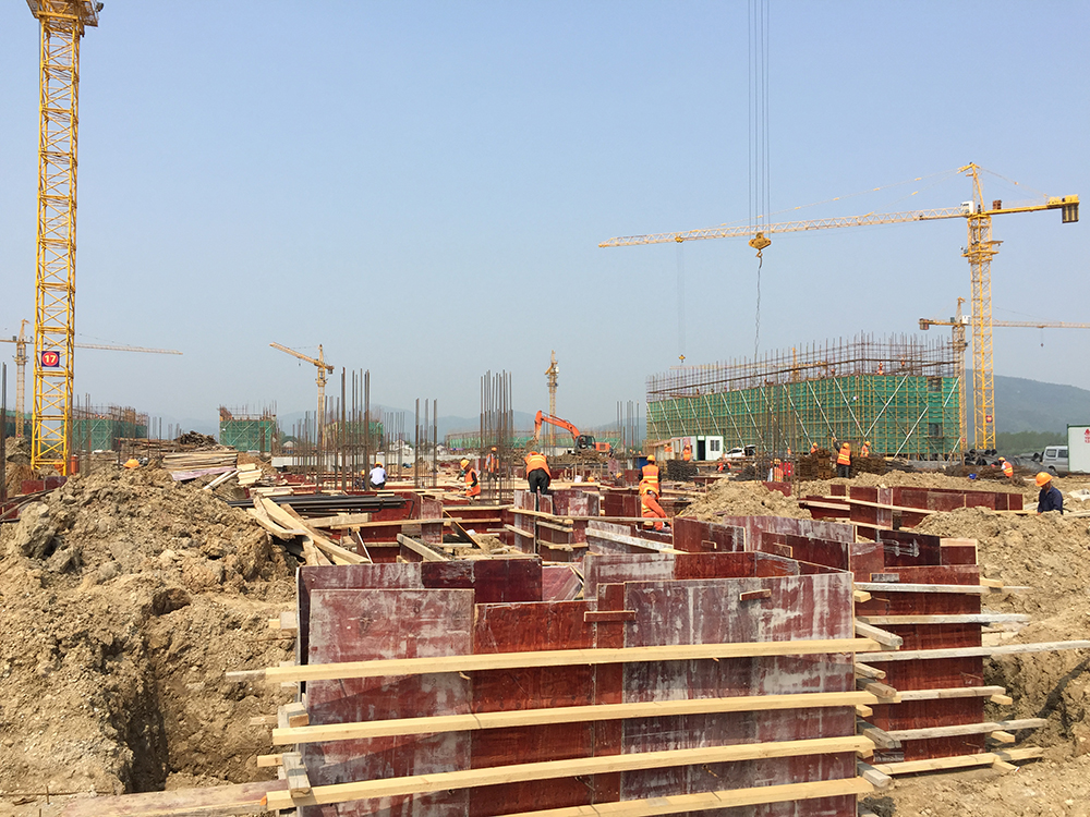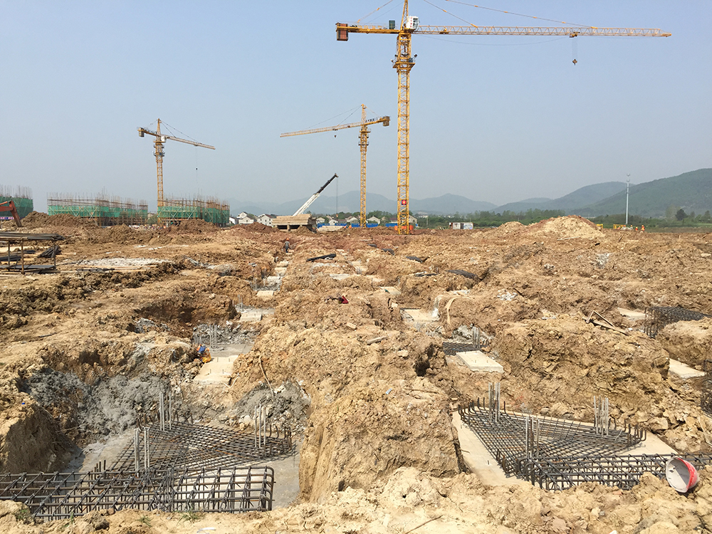 塔吊已进场25台(其中23台已安装完成),现场有挖掘机7台、土方运输车8台、静压桩机1台、移动式高速钻孔钻机6台、锤击桩1台。