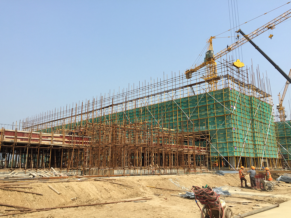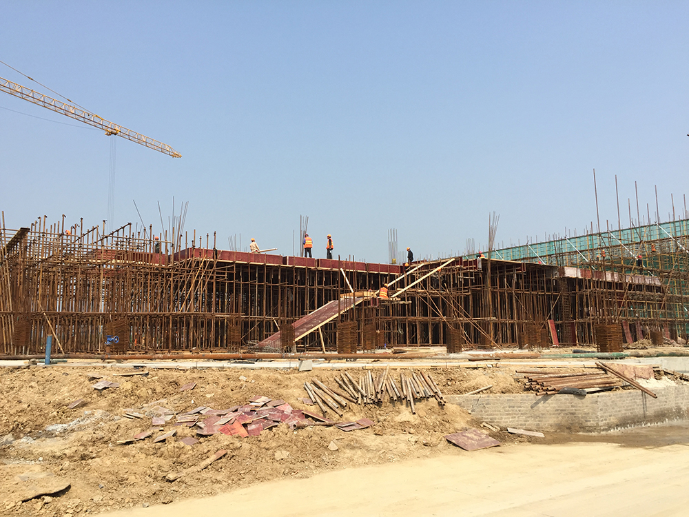 14. 报告厅基础梁,排架搭设完成,钢筋绑扎完成,砼浇筑完成。