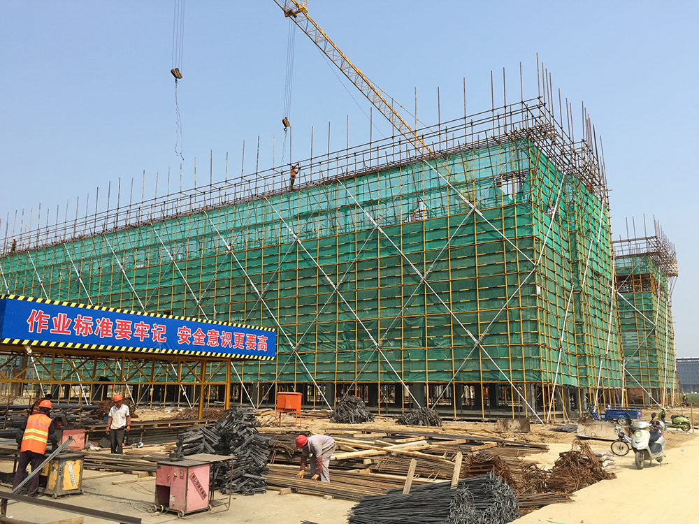 8. 1-1屋面排架完成,梁板钢筋完成,混凝土浇筑完成。1-2六层排架搭设完成70%1-3,1-4五层砼浇筑完成。