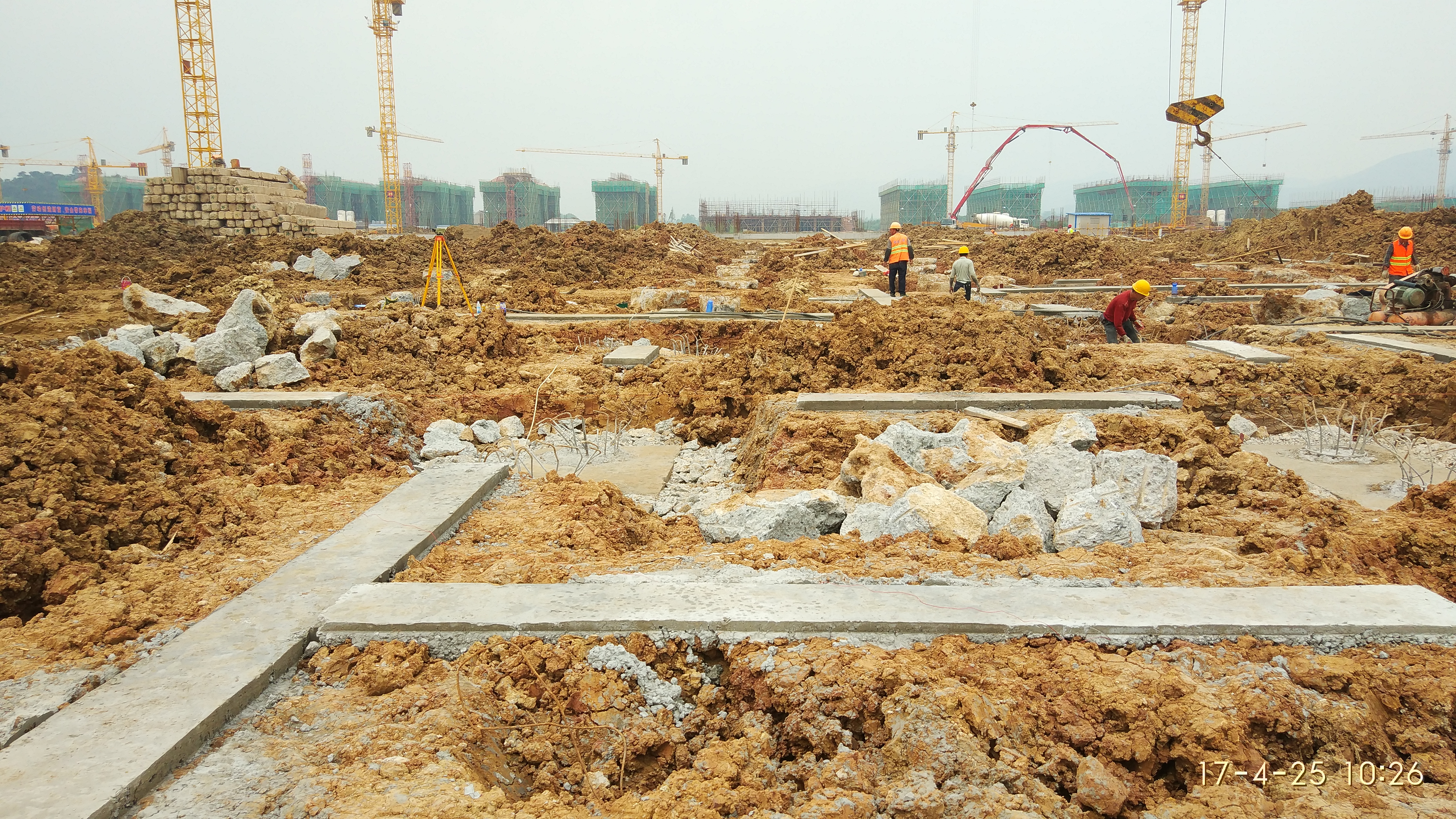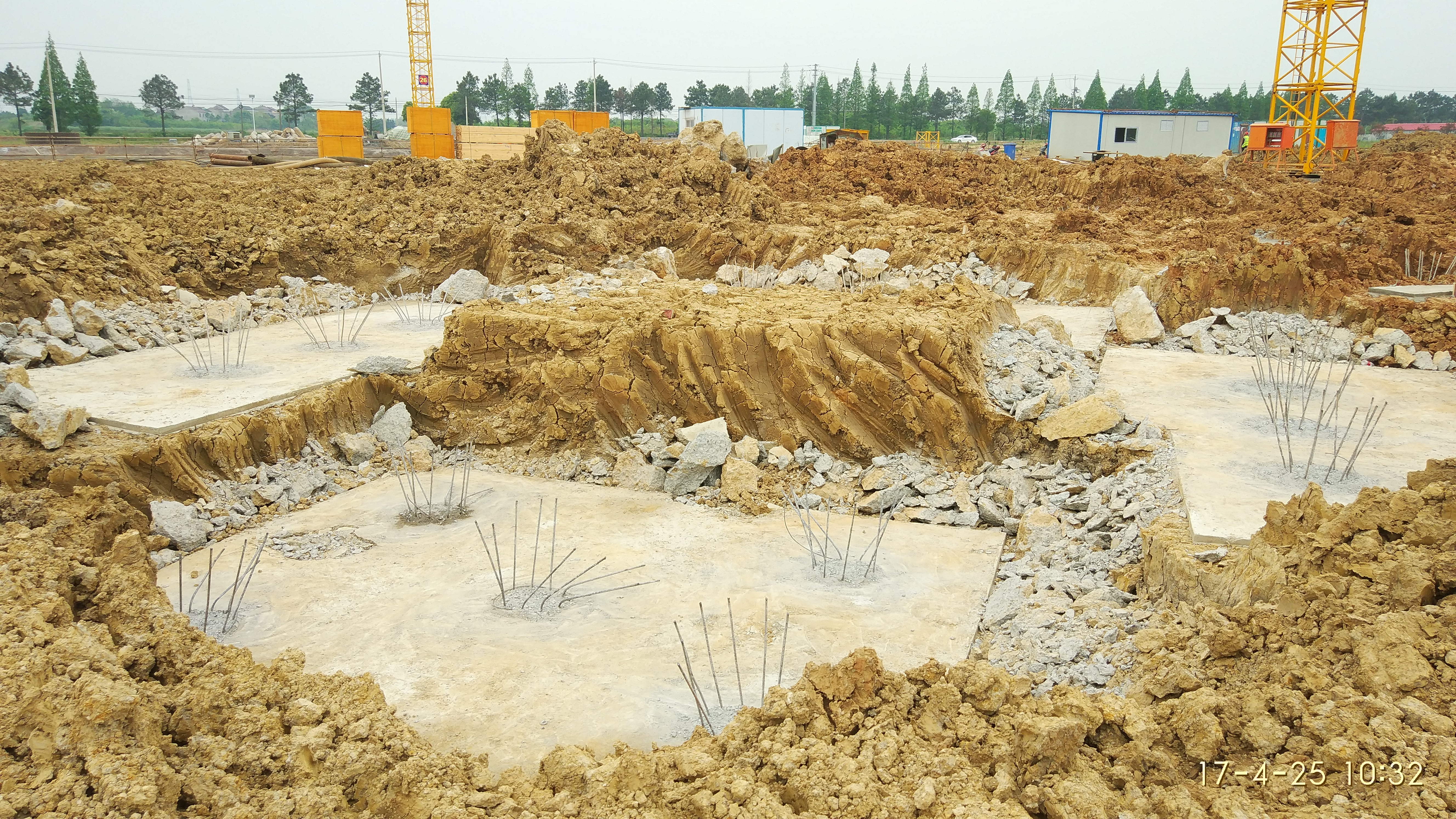 2017.04.25文科楼、理科楼、图文信息中心进行基础桩头开挖、垫层浇筑