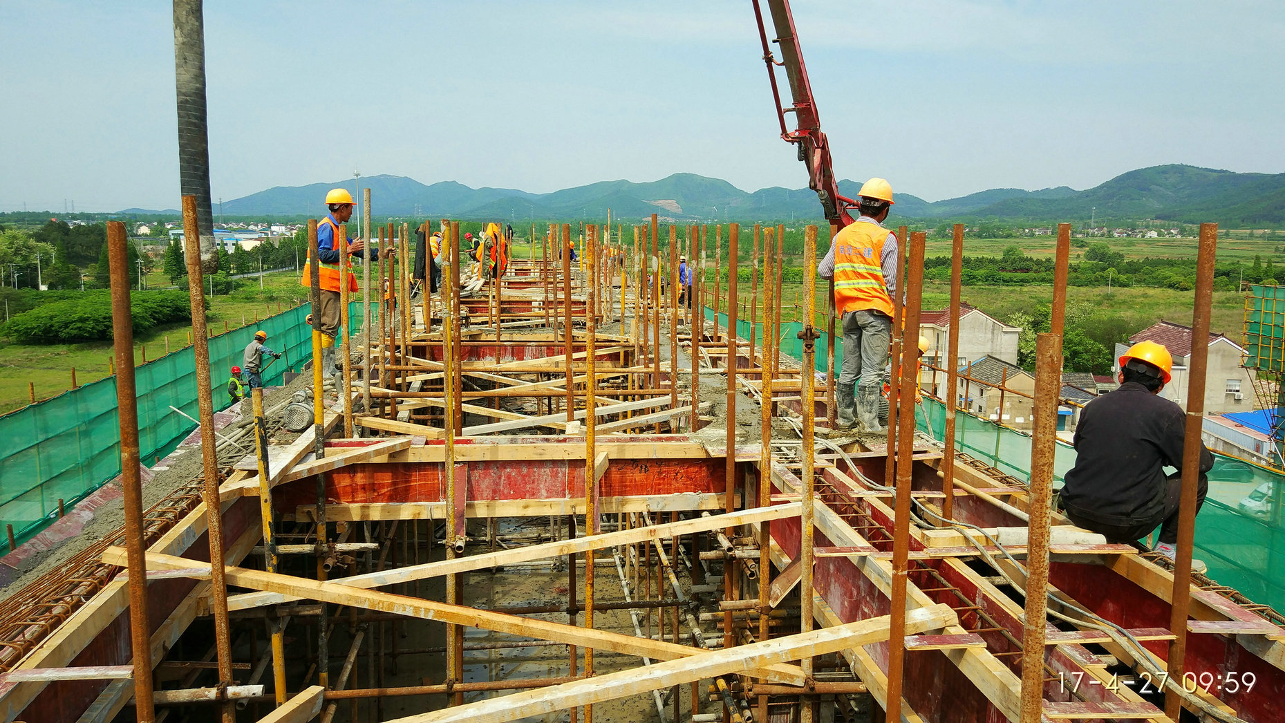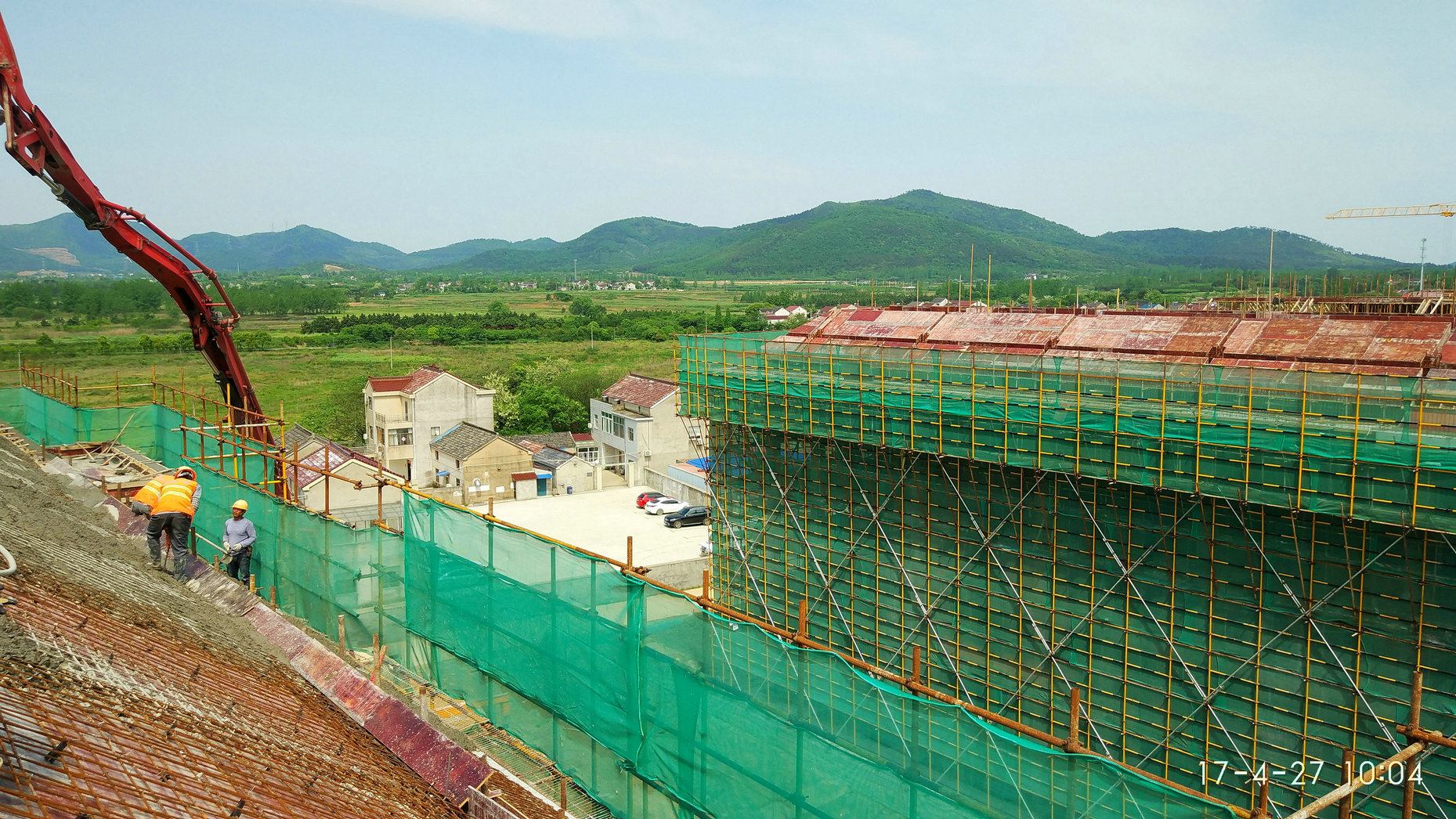 2017年4月21日,学生宿舍7#-2坡屋面进行模板制作,钢筋绑扎,27日完成混凝土浇筑。