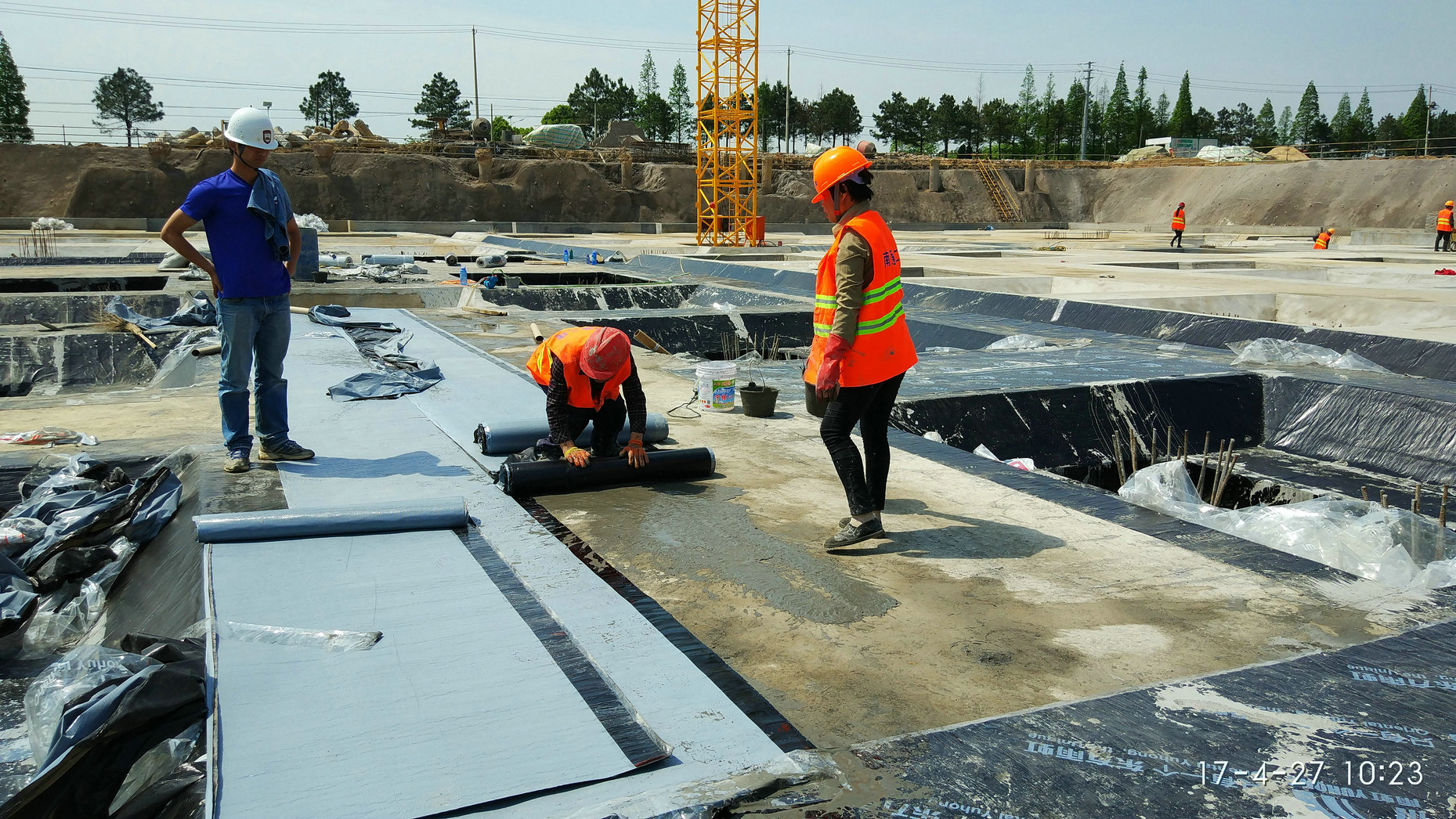 2017.04.27行政楼地下人防工程开始铺设防水卷材