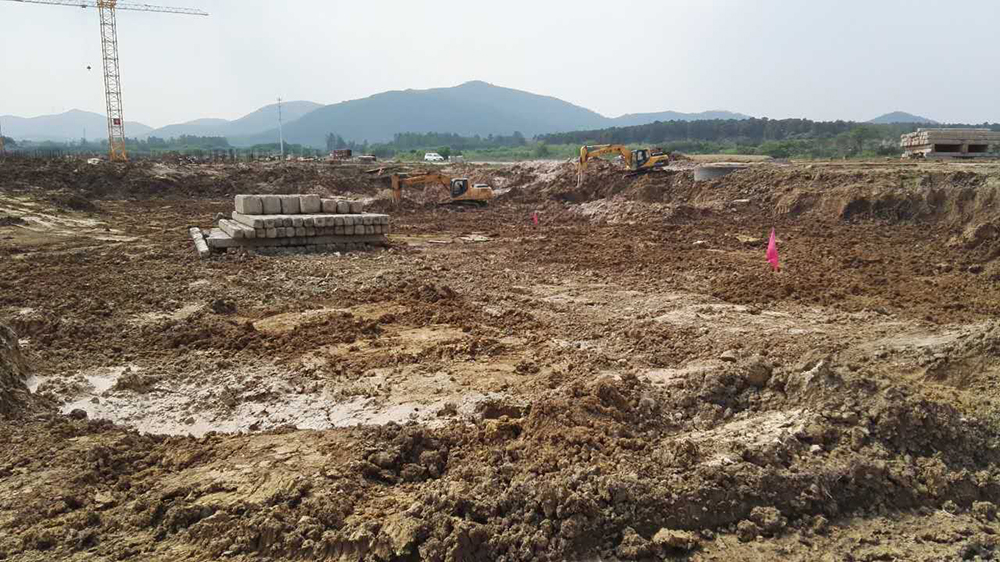 9. 一食堂、留学生公寓完成现场平整,清楚淤泥等工作。