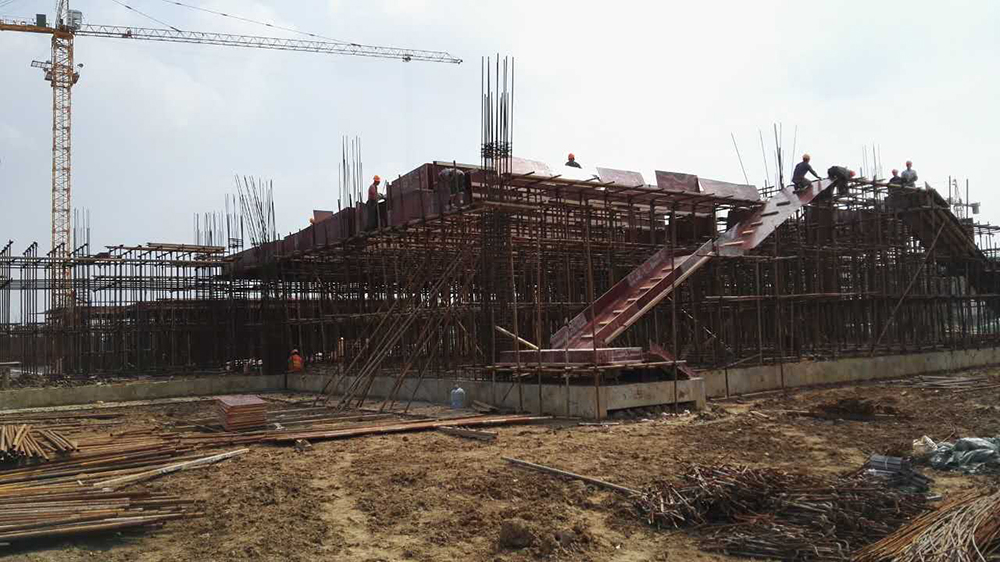4. 公共教学楼一、二一层排架结束,二层梁板模板完成80%