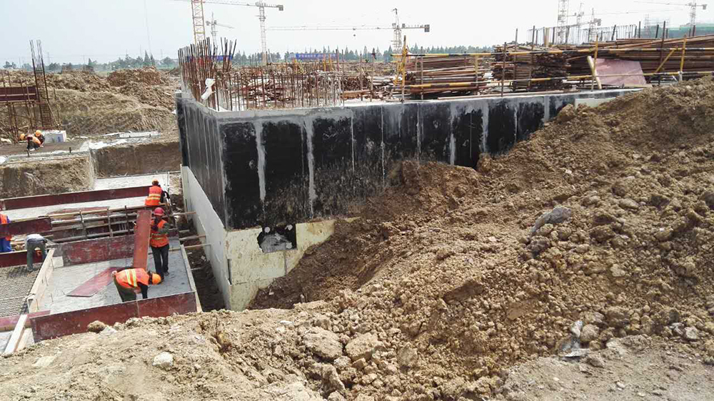 6. 消防水池外墙防水卷材完成,保护层铺贴50%