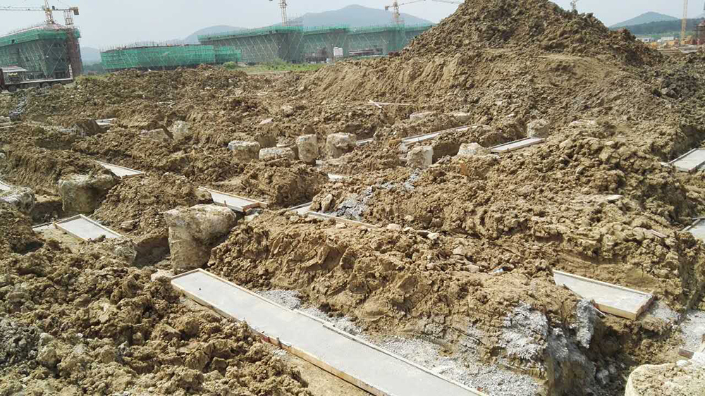 6. 大学生活动中心土方结束,垫层结束,截桩完成。