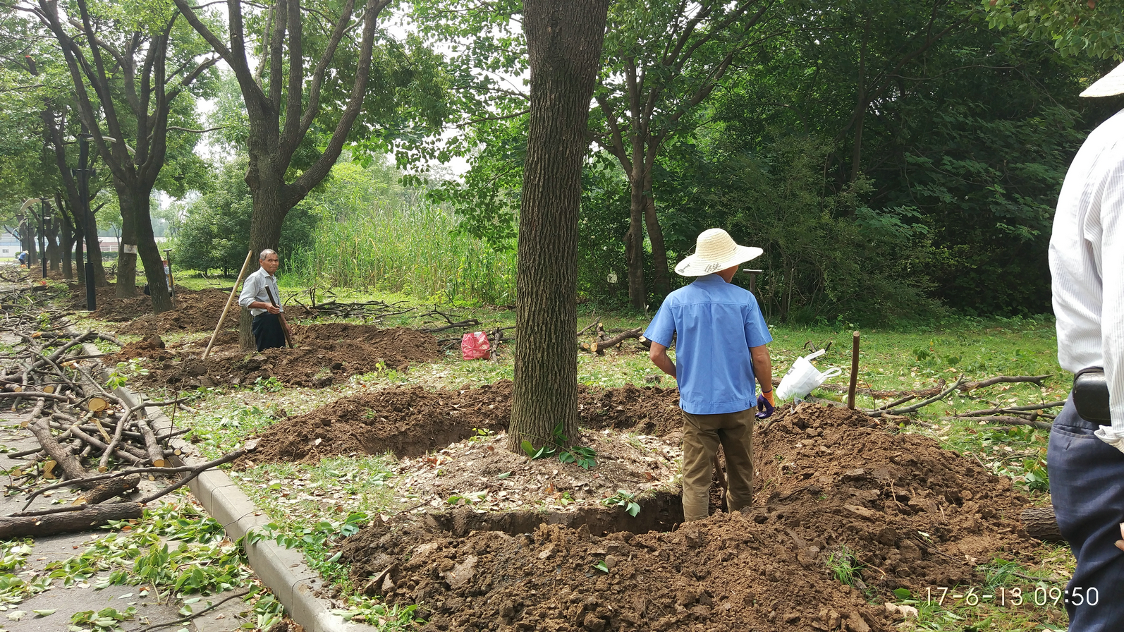 为了保障苗木移植的成活率,根据自然规律,必须先行对苗木进行修剪、断根处理。2017年6月初启动了浦口校区苗木移植前的准备工作,向浦口园林管理部门申报同意后,经过工人10多天的辛勤劳动,已经完成修剪树木202棵,断根138棵,对树木进行挖球、浇水、割树皮、漆封、浇生根液、清理枯枝等工作。先后投入人工232人次、高空作业车1台、油锯5台、小卡车2辆。