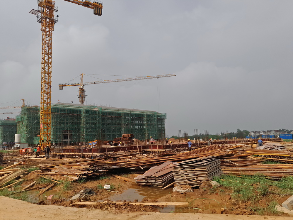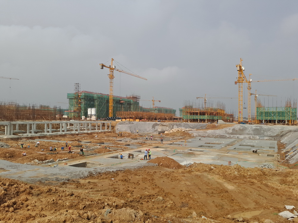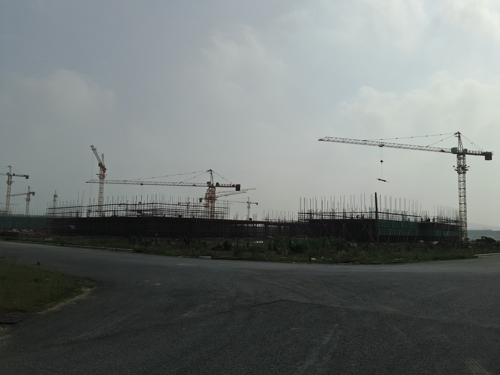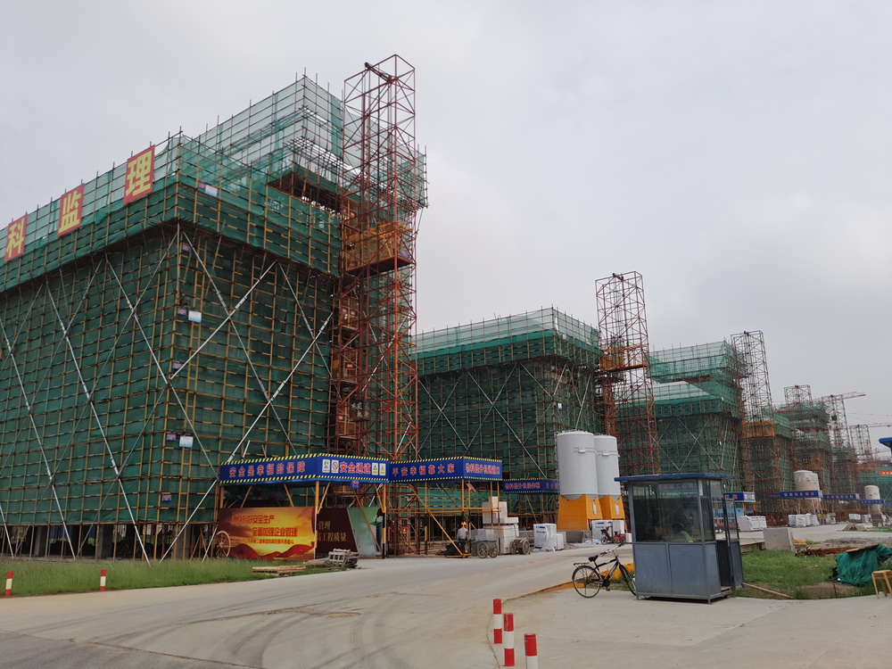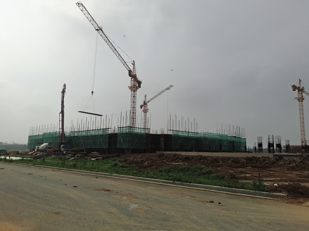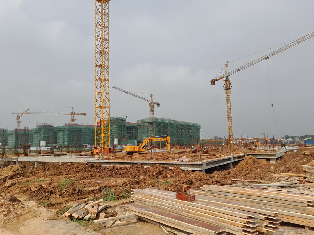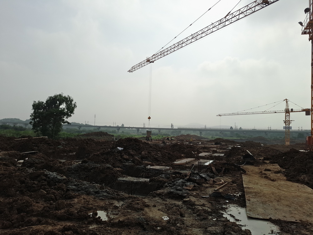 塔吊已进场25台(其中25台已安装完成),物料提升机进场12台(其中11台已安装完成),现场有挖掘机12台、土方运输车10台、冲击桩机1台(用于桥梁桩施工)。
