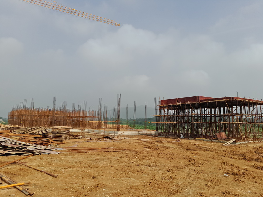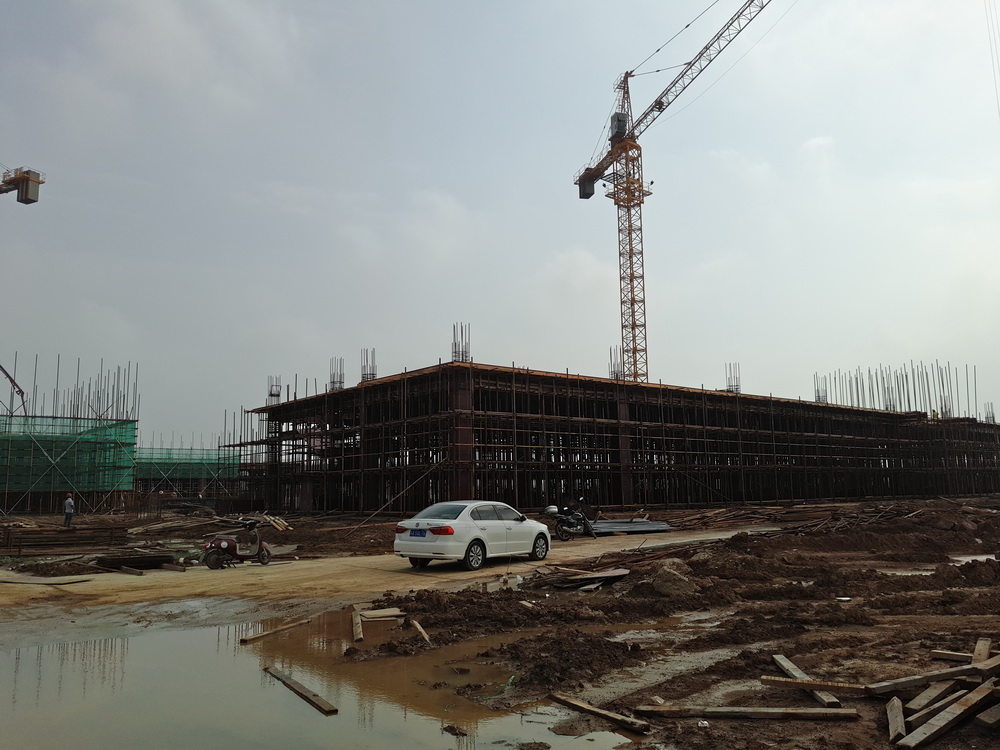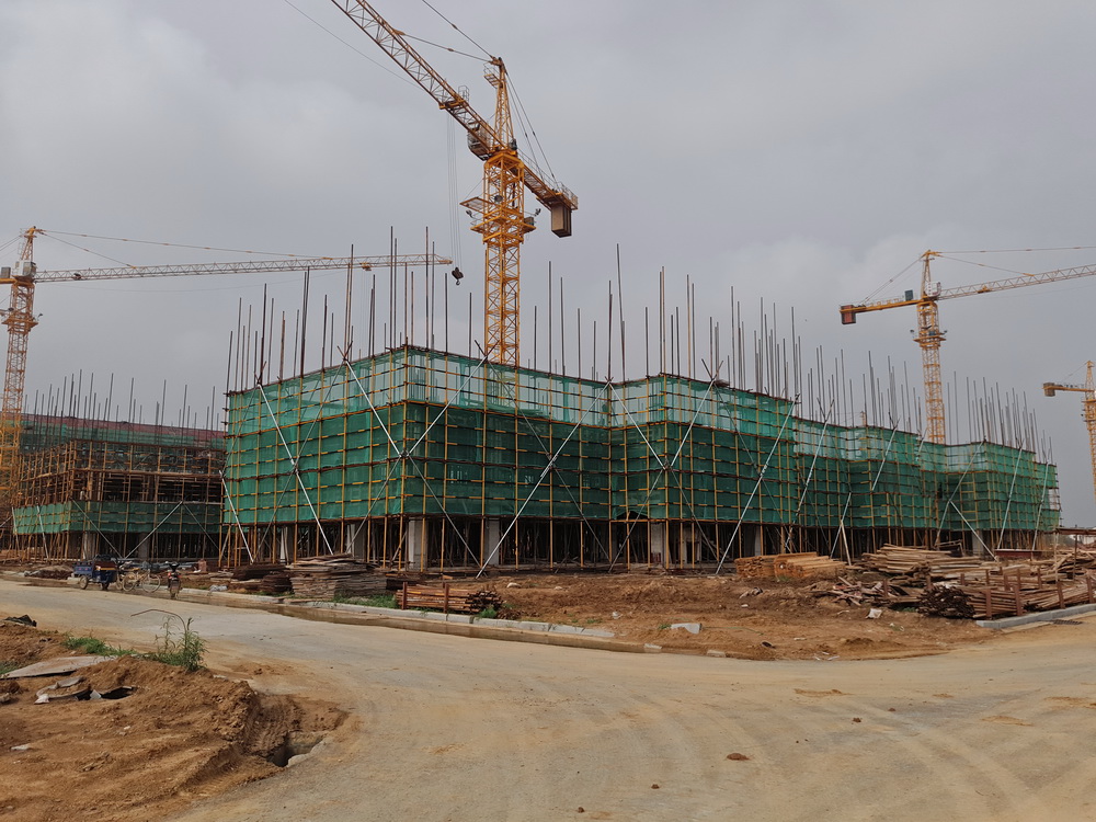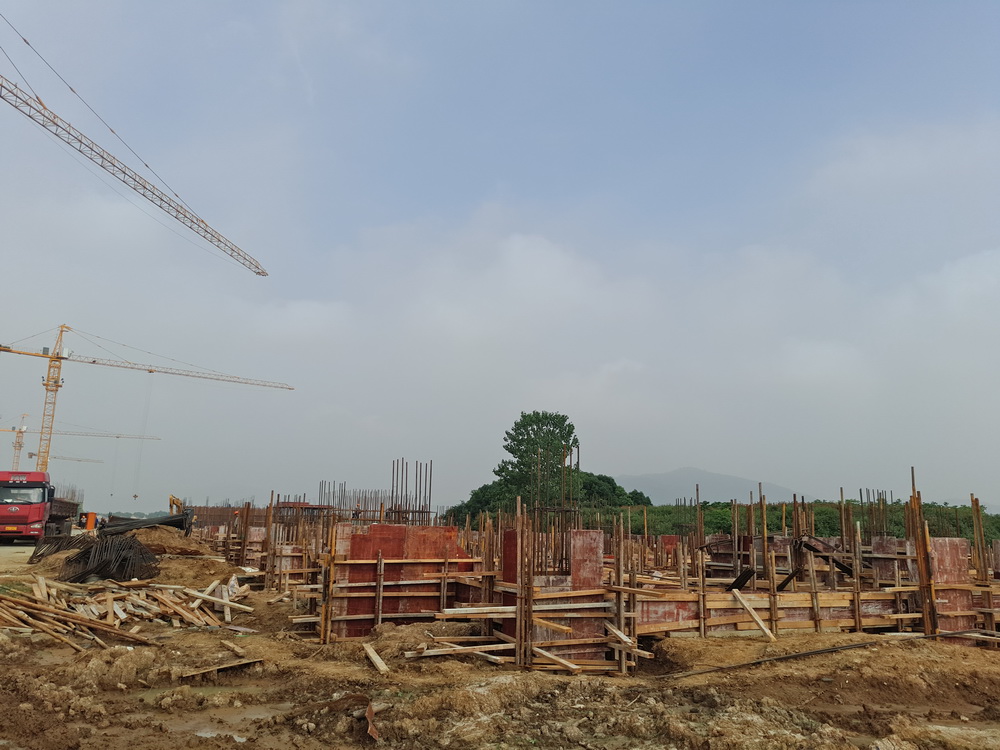 8. 大学生活动中心:一层排架搭设完成,柱子钢筋绑扎完成50%,东段土方回填结束。