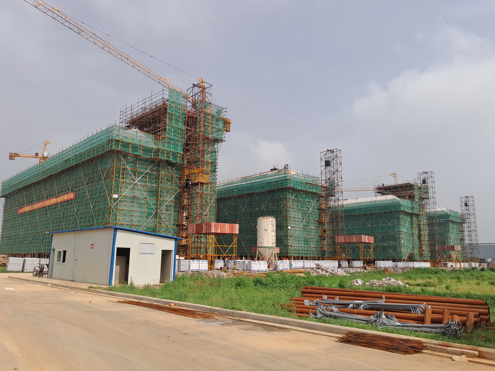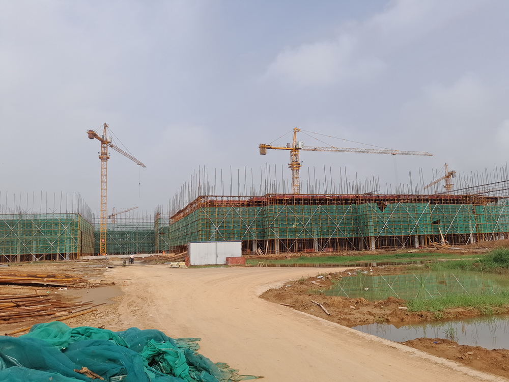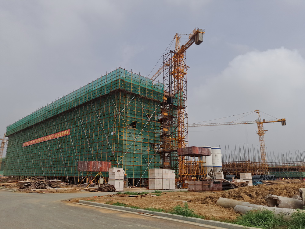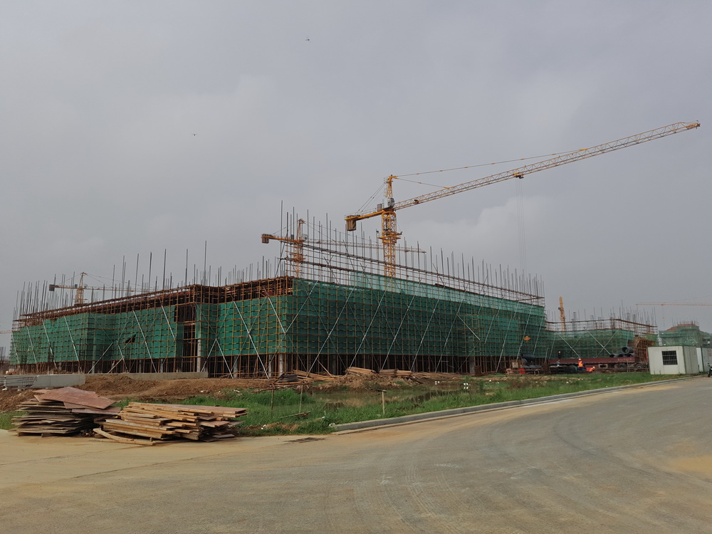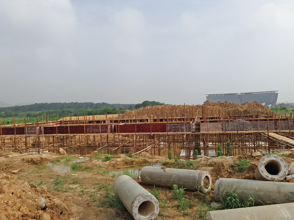 8. 大学生活动中心:一层排架搭设完成,柱子钢筋绑扎完成50%,东段土方回填结束。