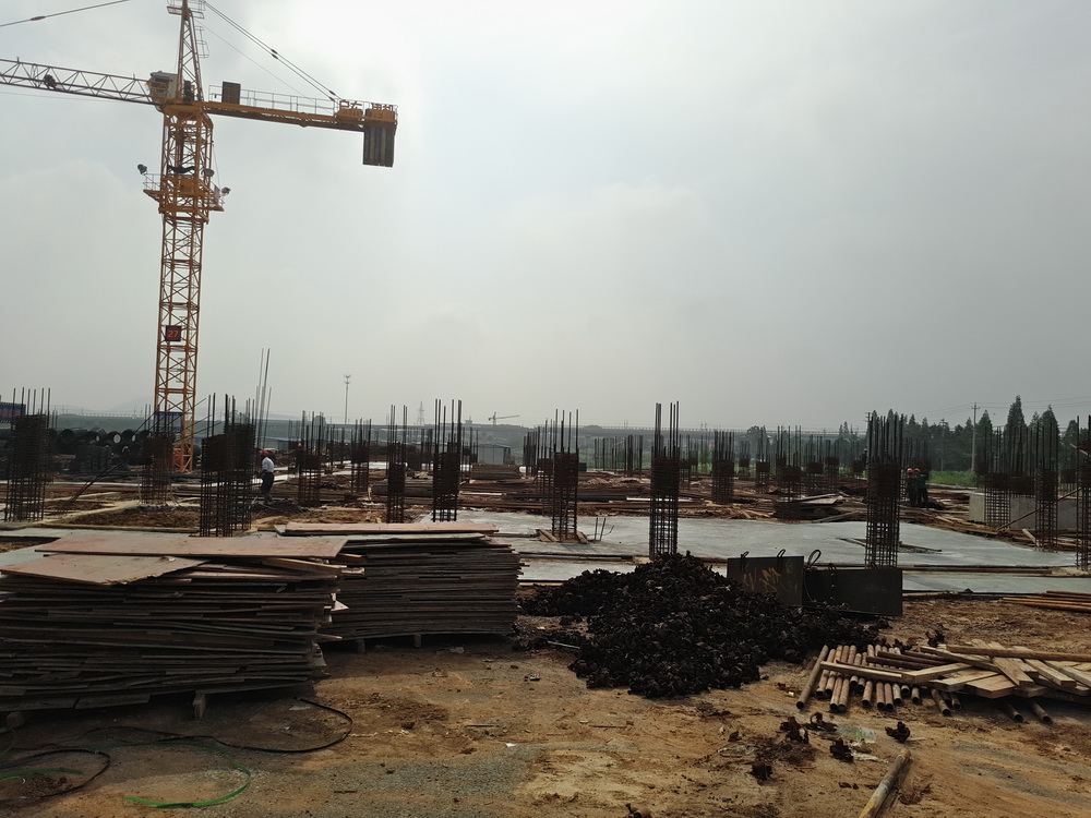 7. 大学生活动中心,一层排架搭设完成60%,柱子钢筋绑扎完成60%