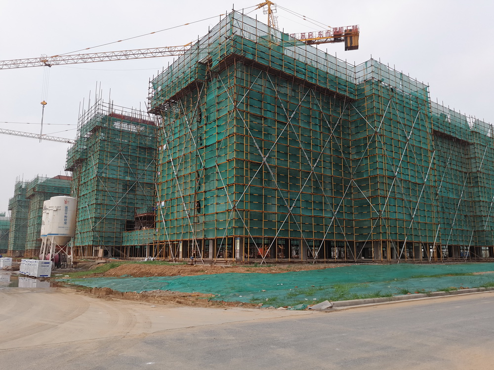 17. 5组团:室内外墙体完成70%,屋脊钢筋绑扎完成80%,砼浇筑完成50%