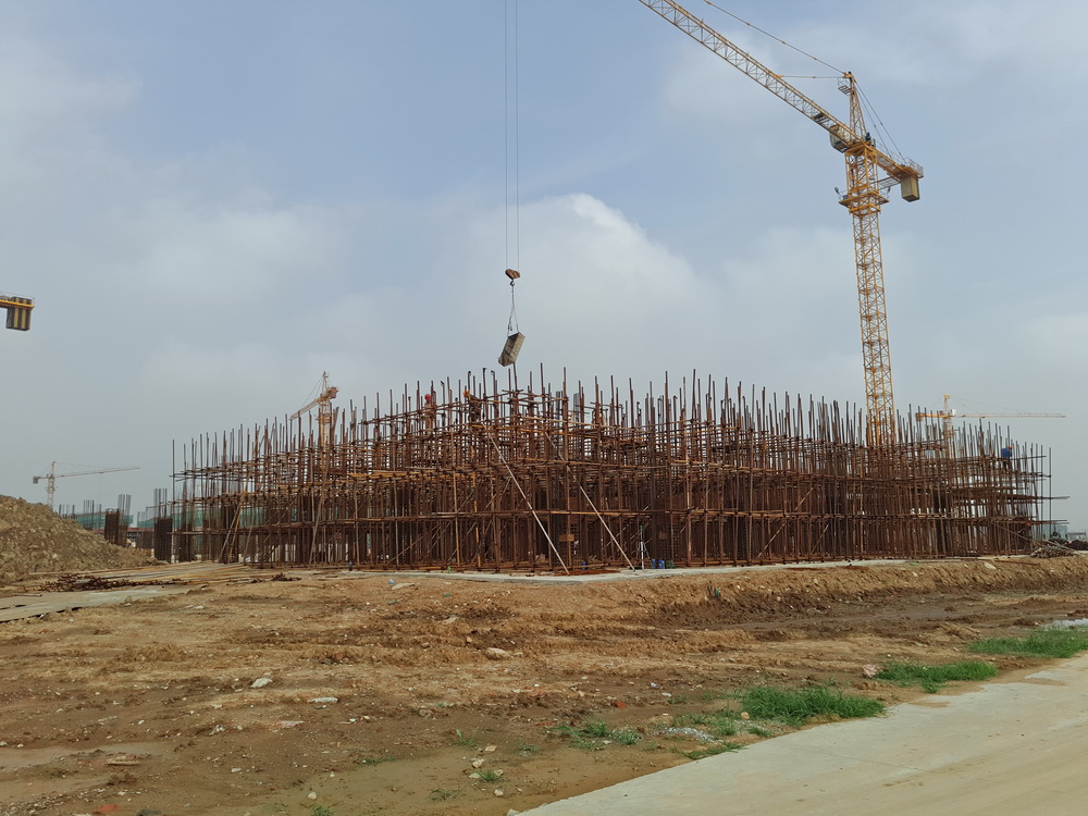 9. 艺术中心:一层排架搭设结束,柱钢筋绑扎完成。
