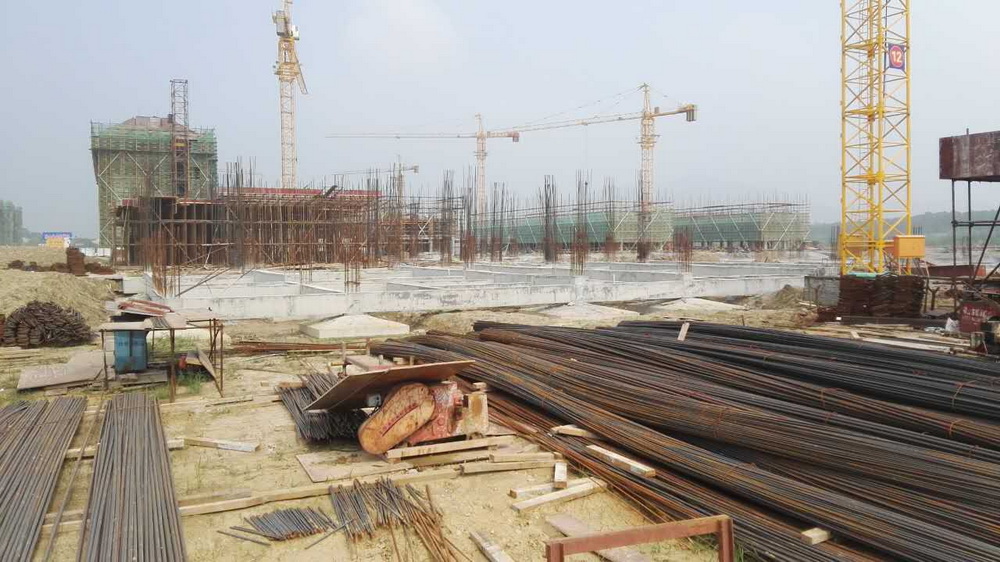 2. 图文信息中心高支模架地坪硬化结束,一层排架完成50%,柱钢筋完成50%。