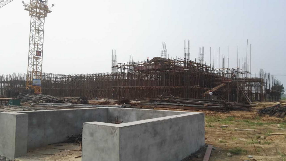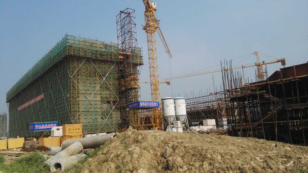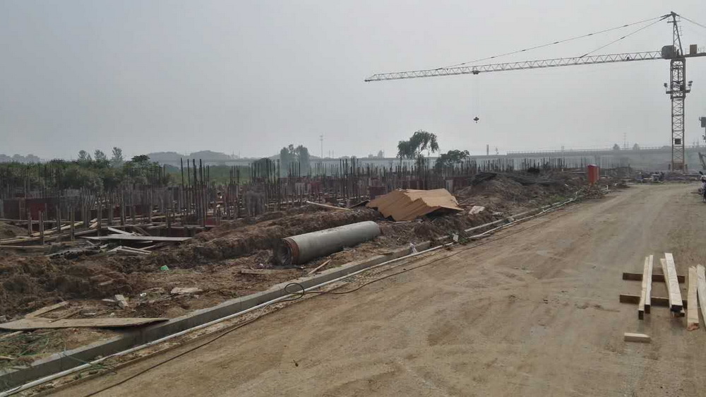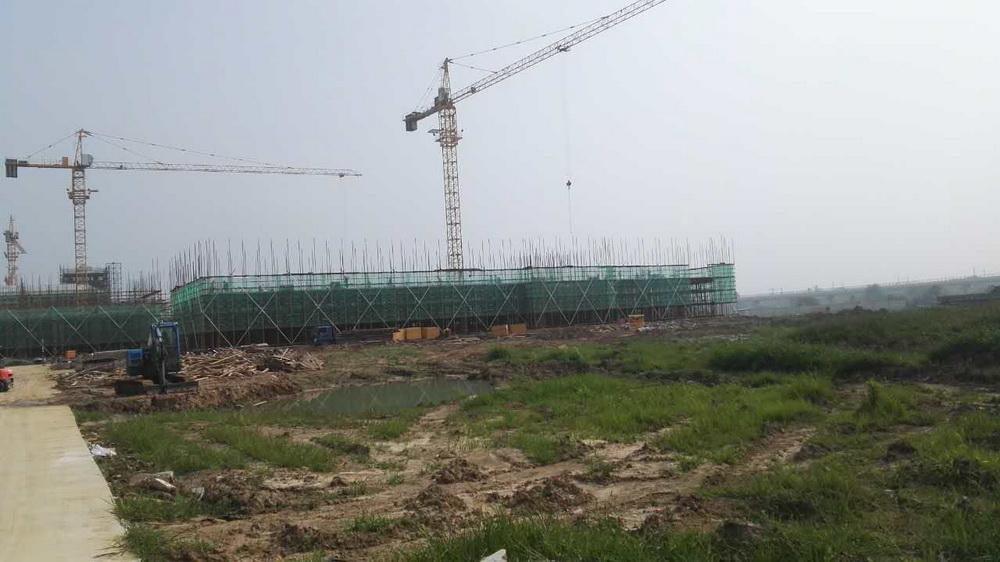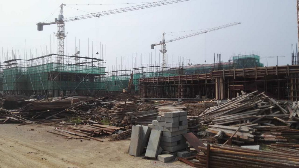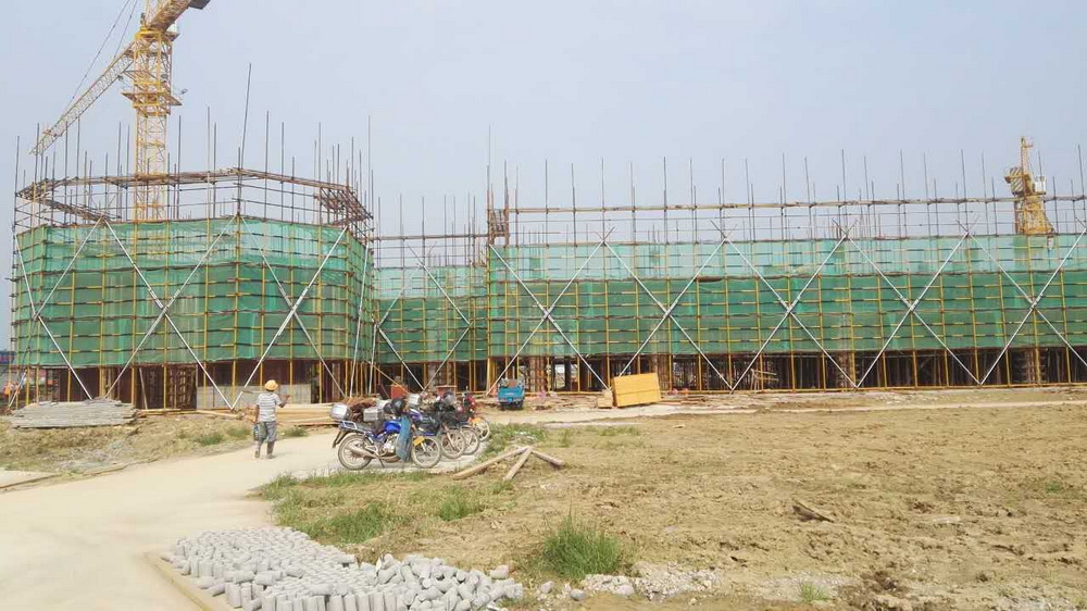 10. 大学生活动中心:部分土方回填结束,一层排架搭设完成,柱钢筋绑扎结束,平台模板完成50%。