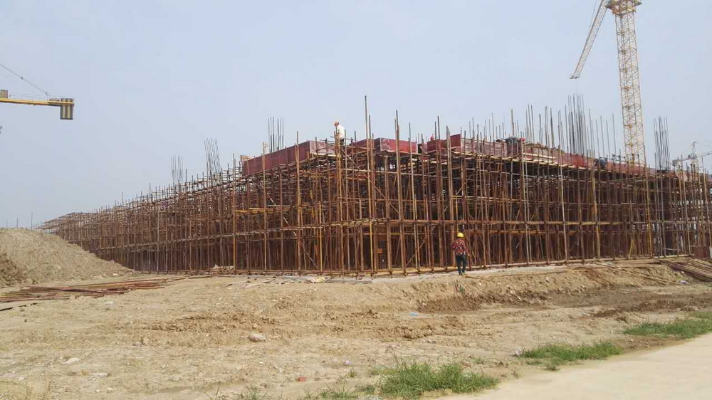 8. 艺术中心一层排架搭设结束,柱钢筋绑扎结束。