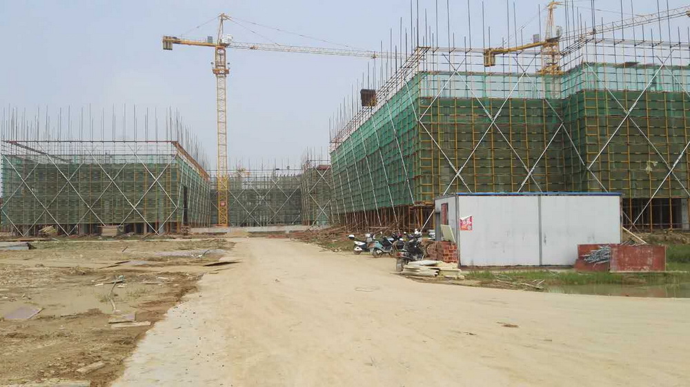 4. 文科楼一:二层排架搭设完成70%,二层梁模板完成50%,柱钢筋完成50%。