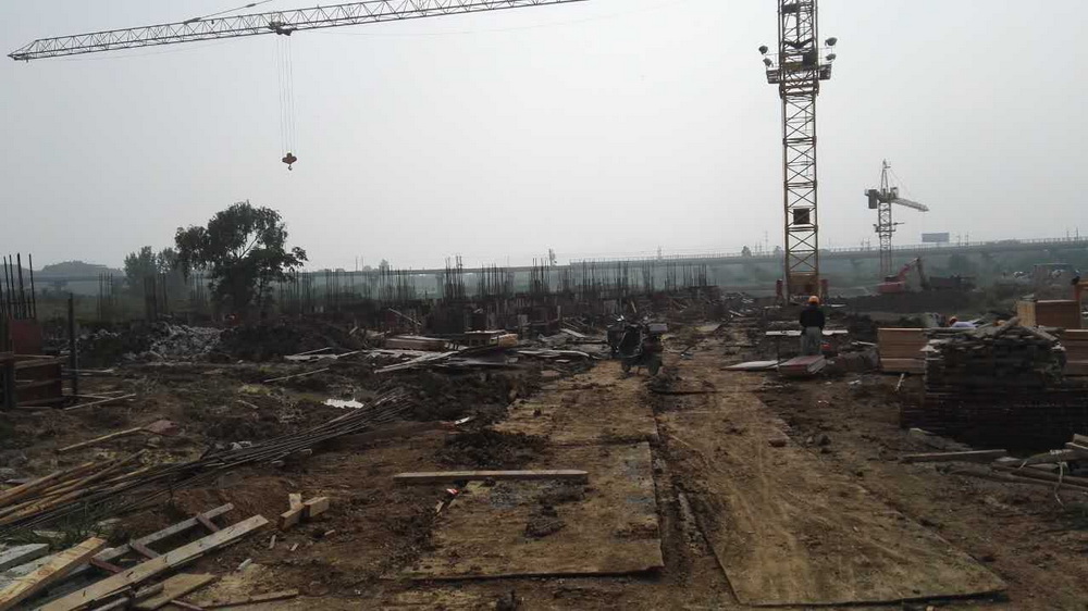 塔吊已进场25台(其中25台已安装完成),物料提升机进场12台(其中11台已安装完成),现场有挖掘机12台、土方运输车10台、冲击桩机1台(用于桥梁桩施工)。