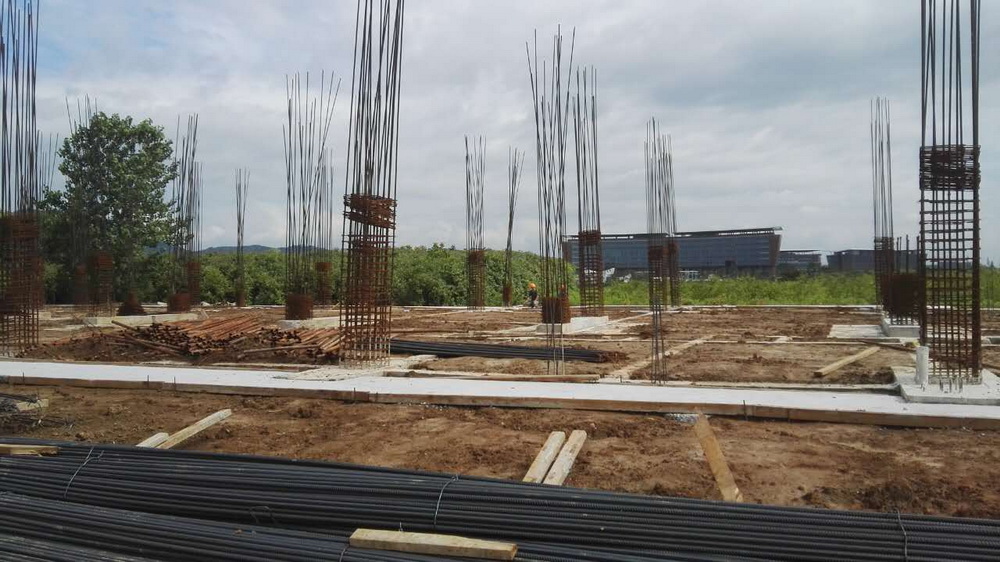 12. 留学生公寓:砖胎膜完成,防水完成50%,桩基检测结束,平台钢筋成型完成至50%。