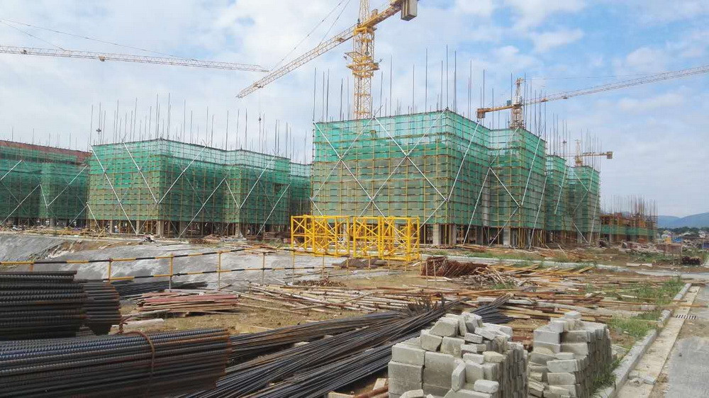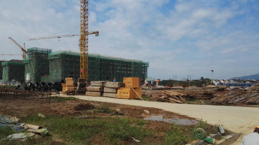 13. 青年教师周转公寓:土方回填结束,一层排架搭设80%,柱钢筋绑扎、平台模板完成60%。