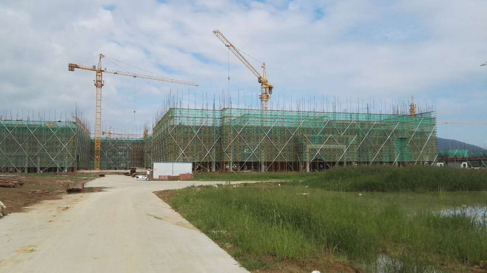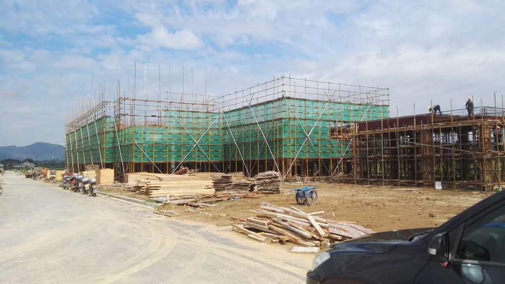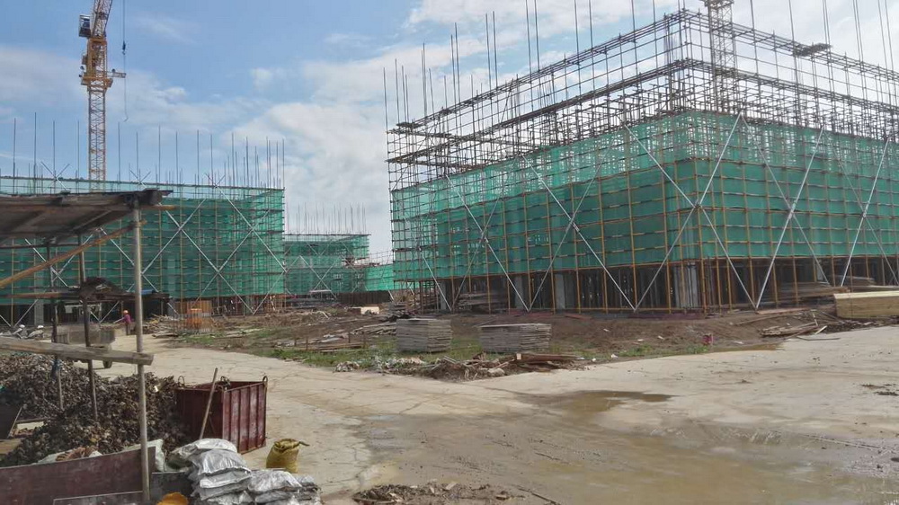 5. 公共教学楼一:三层排架搭设完成,平台模板完成80%,梁钢筋完成50%。公共教学楼二:三层排架搭设结束,平台模板完成,梁钢筋绑扎结束。公共教学楼三 排架搭设完成。