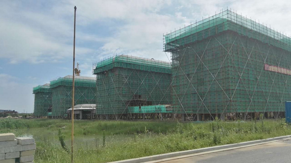 16. 3组团:3-1、3-2四层排架搭设80%,柱钢筋绑扎完成,平台模板完成50%;3-3、3-4二层砼浇筑完成,三层排架搭设50%。