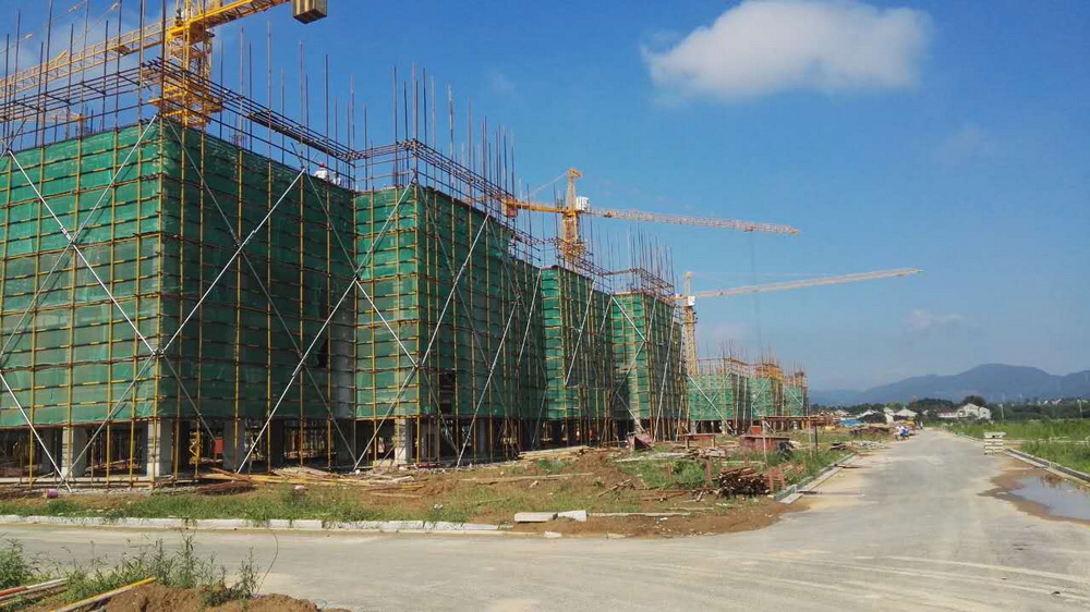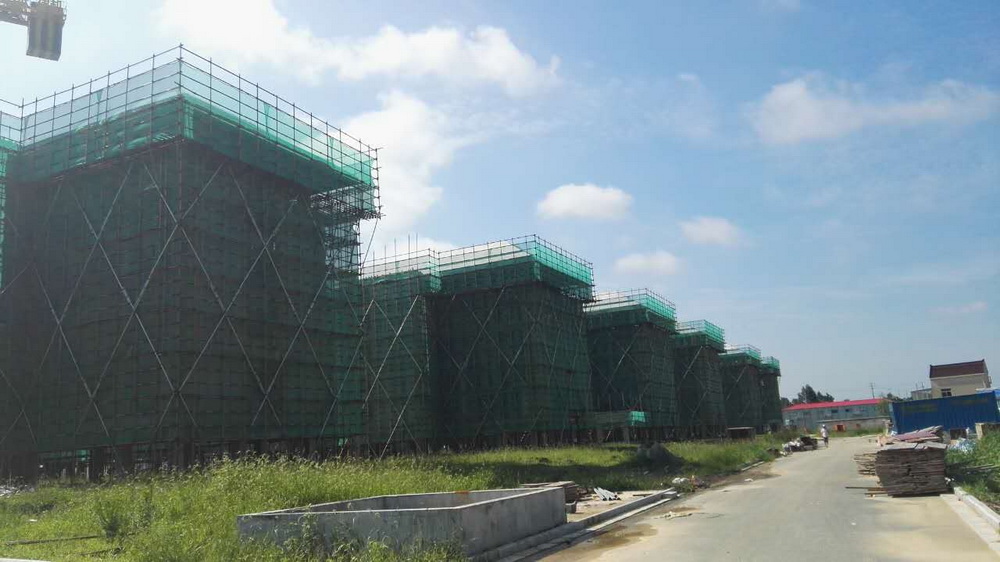 13. 青年教师周转公寓:一层排架搭设,柱钢筋绑扎完成、平台模板完成50%。