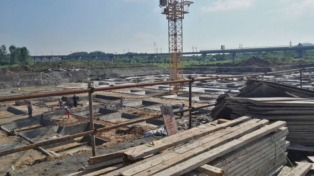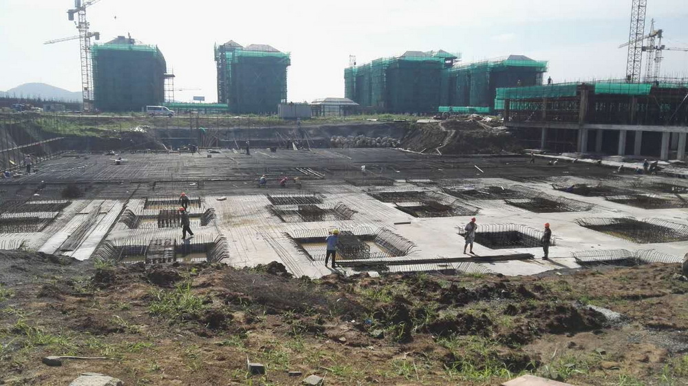 16. 留学生公寓:垫层完成,防水完成,保护层完成,承台钢筋完成50%。