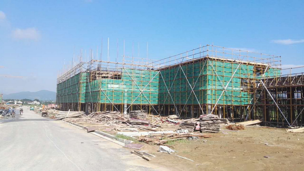 12. 后勤附属用房一:三层排架搭设完成。