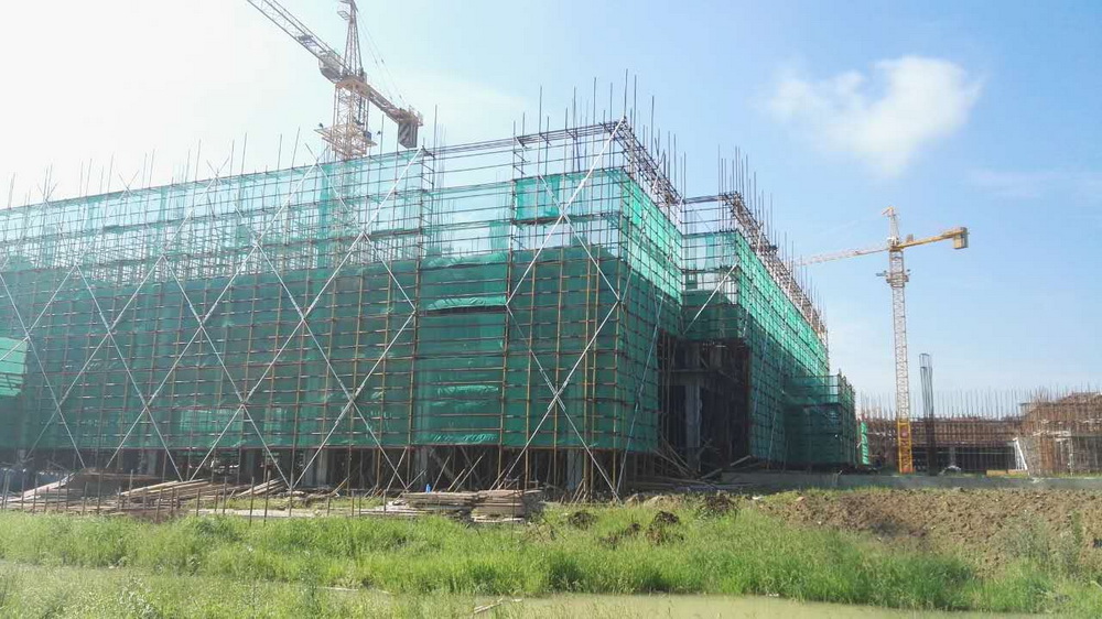 3. 图文信息中心:一层砼浇筑完成,二层排架搭设70%,平台模板完成40%。