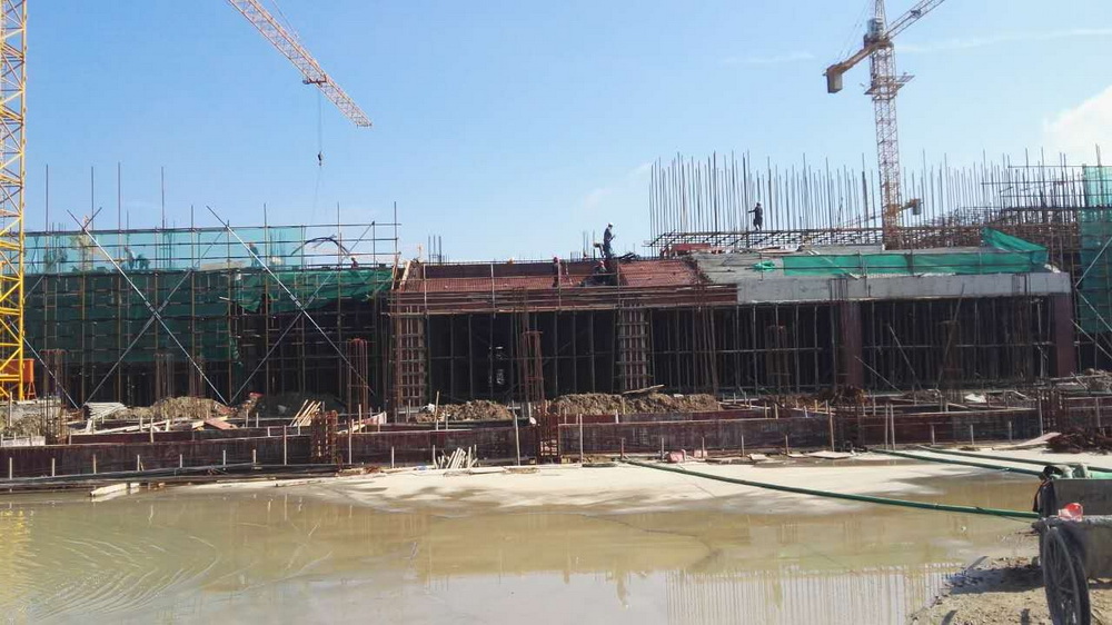 8. 艺术中心:一层砼浇筑完成,二层排架搭设70%。