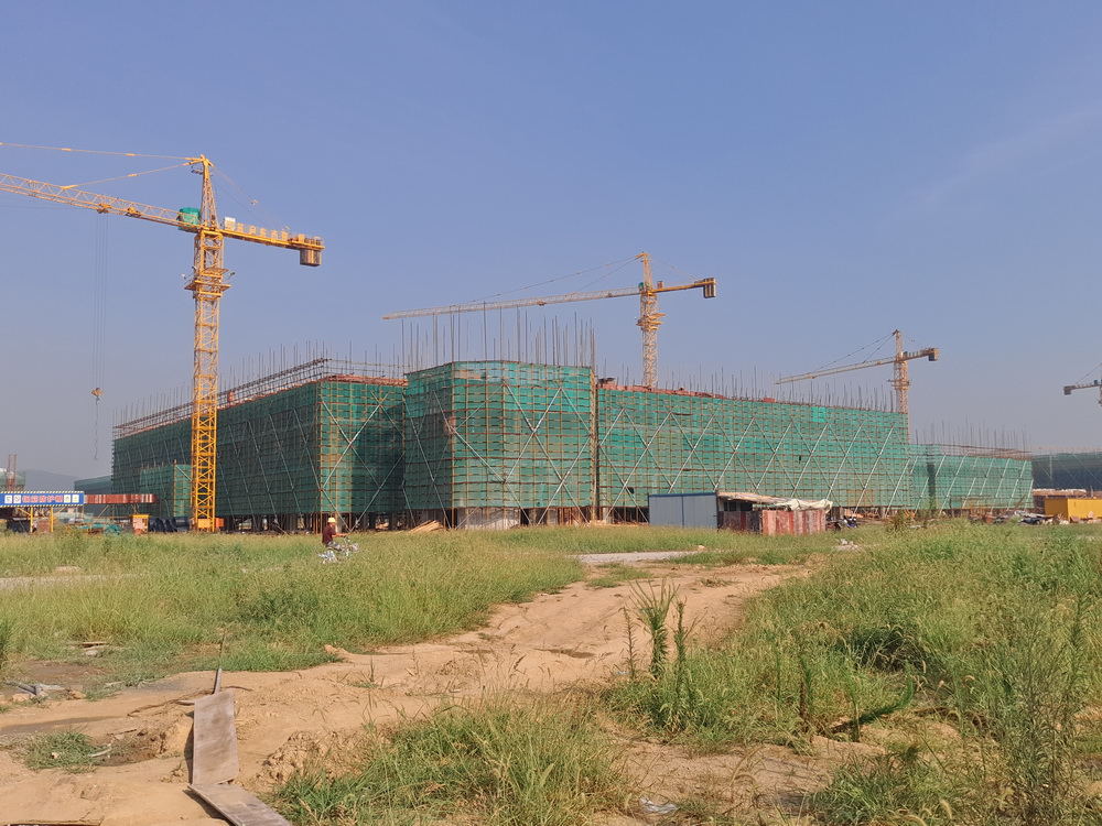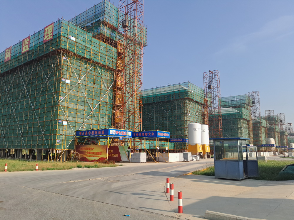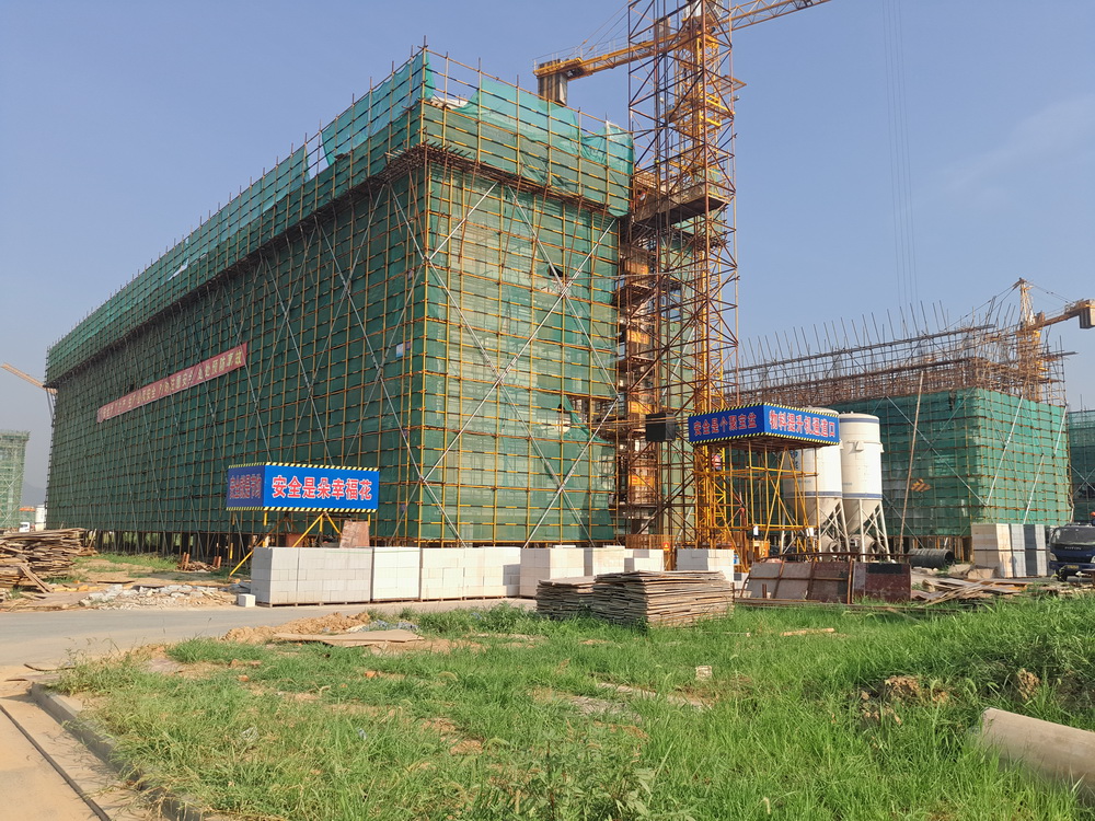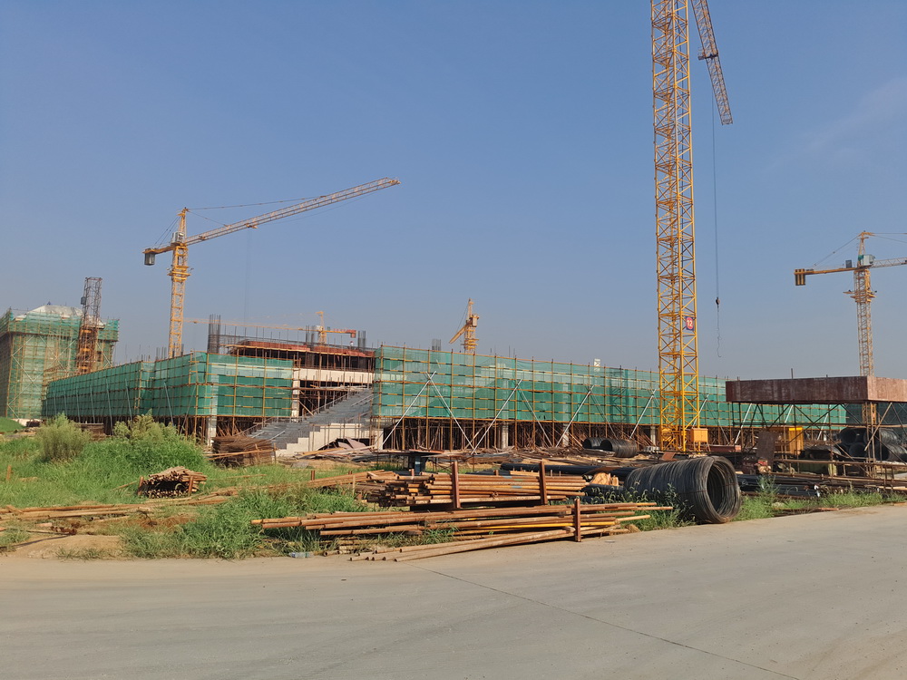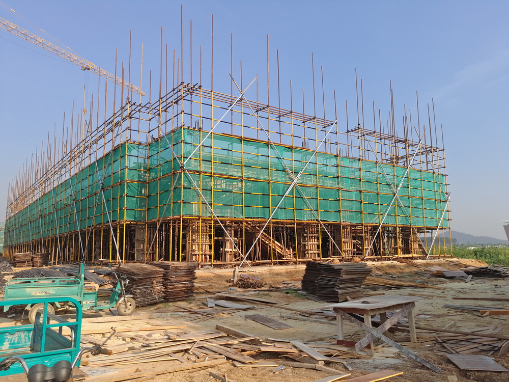 2. 图文信息中心:二层排架搭设完成,三层平台排架搭设完成80%,平台模板完成50%。