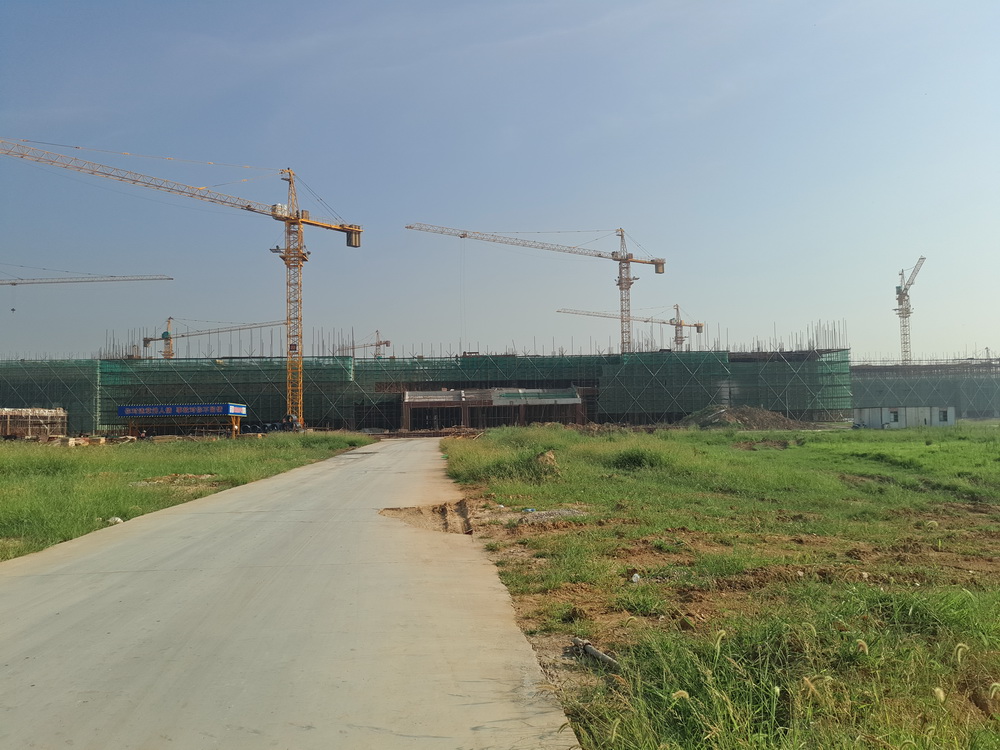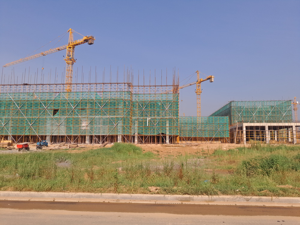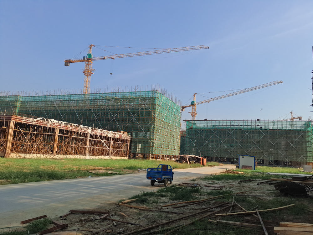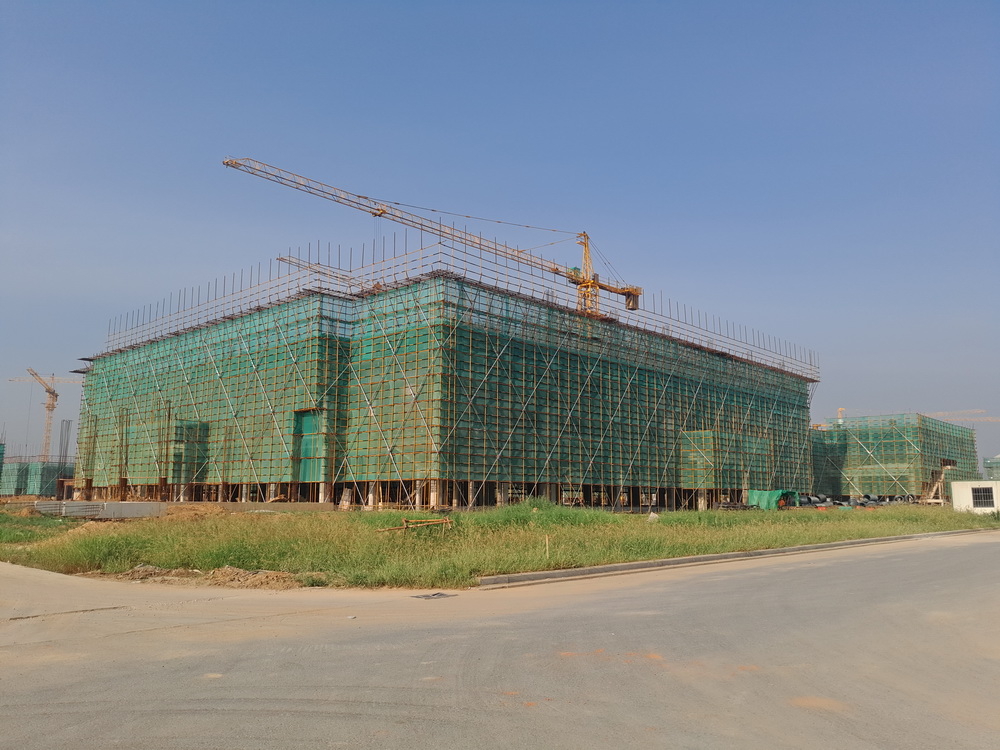 3. 图文信息中心:二层排架搭设完成,三层平台模板完成,钢筋绑扎70%,砼浇筑完成50%。