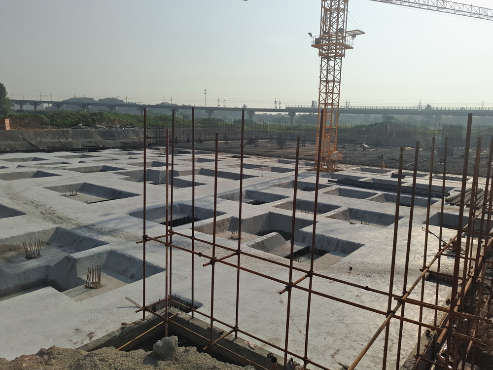 6. 行政楼:地下室排架结束,平台模板完成70%,平台钢筋绑扎60%,顶板砼浇筑完成50%。